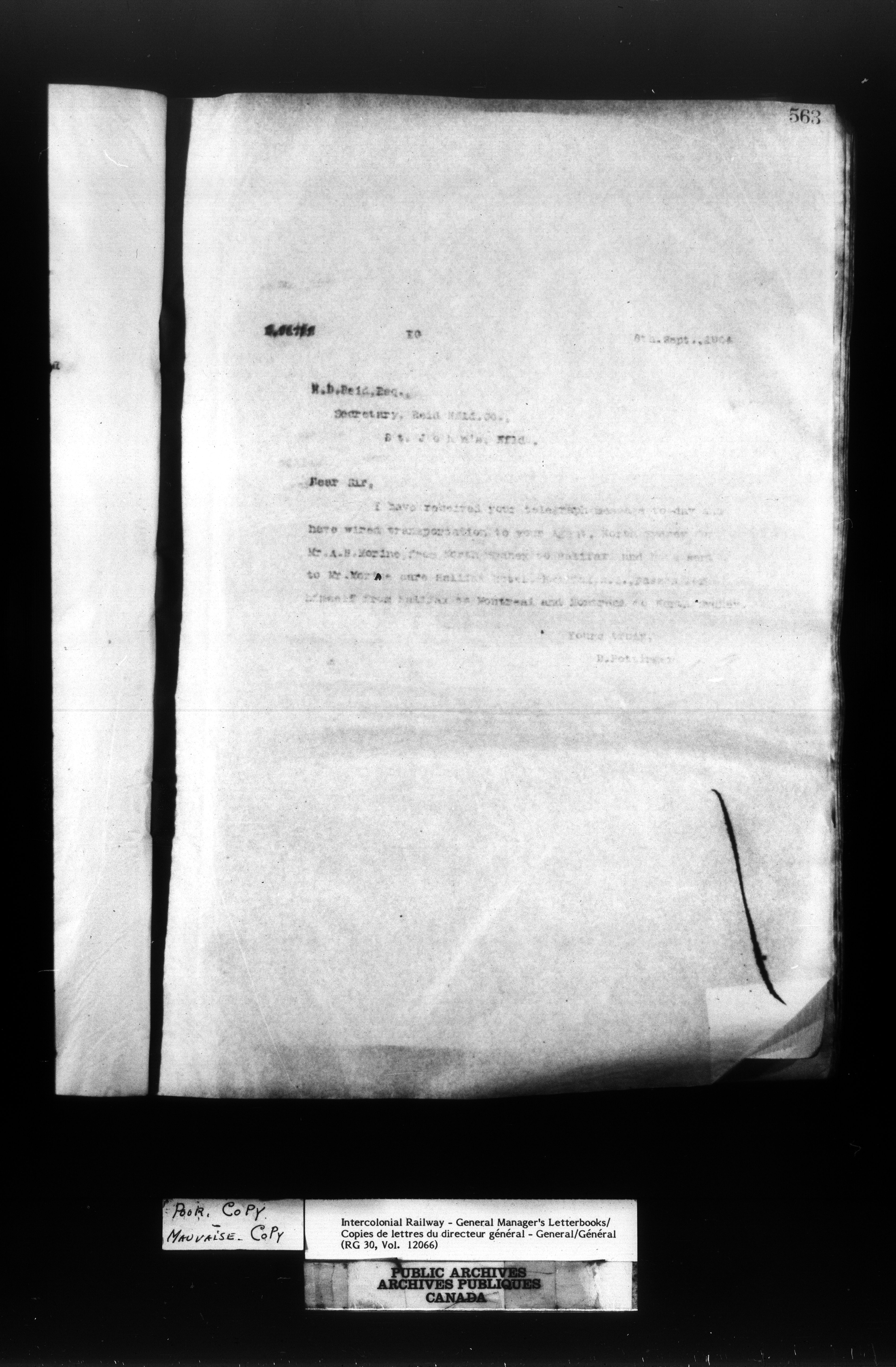 Canadian Government Railways : Office of the General Manager, Outward correspondence - 11455