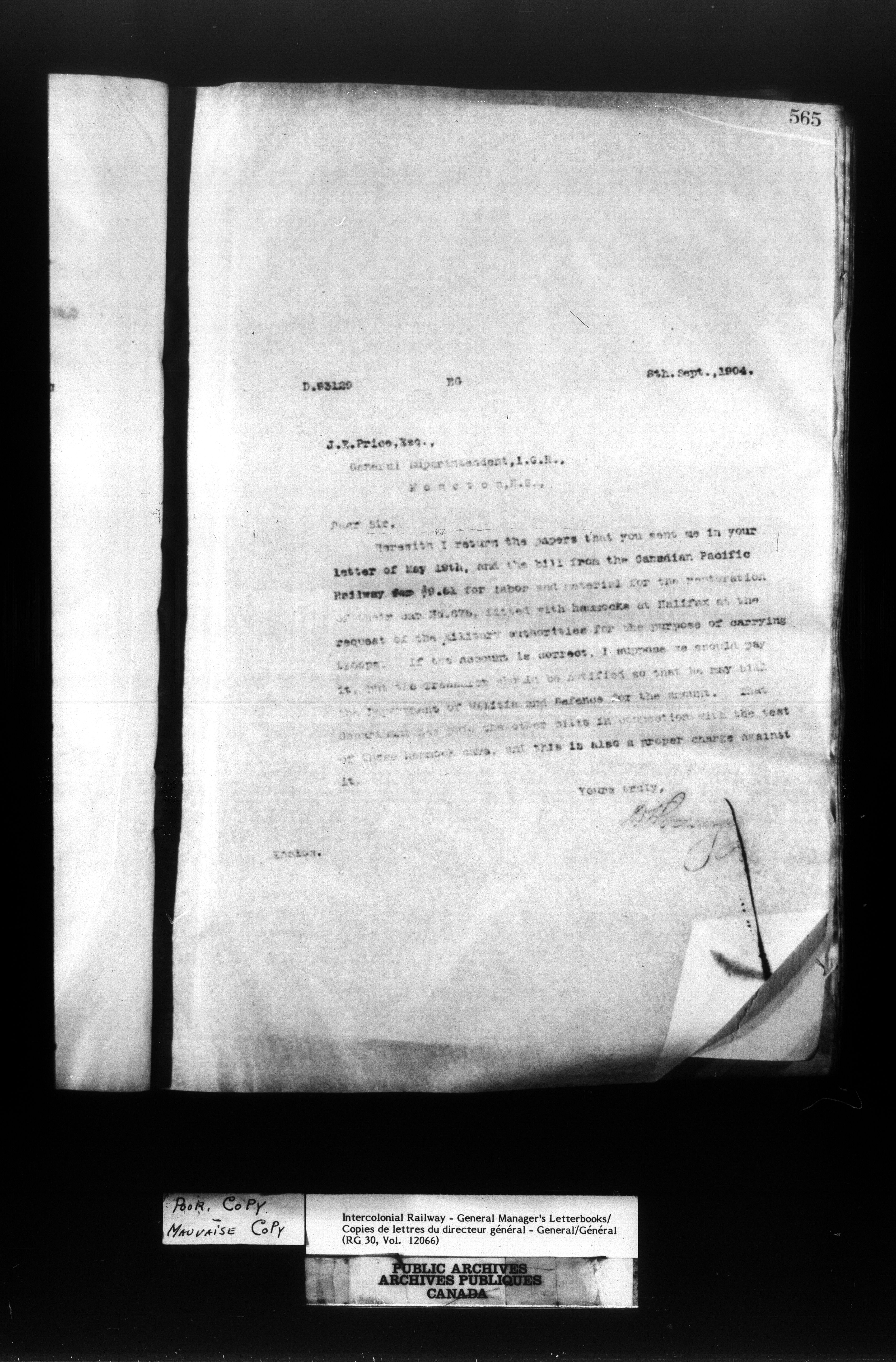 Canadian Government Railways : Office of the General Manager, Outward correspondence - 11455