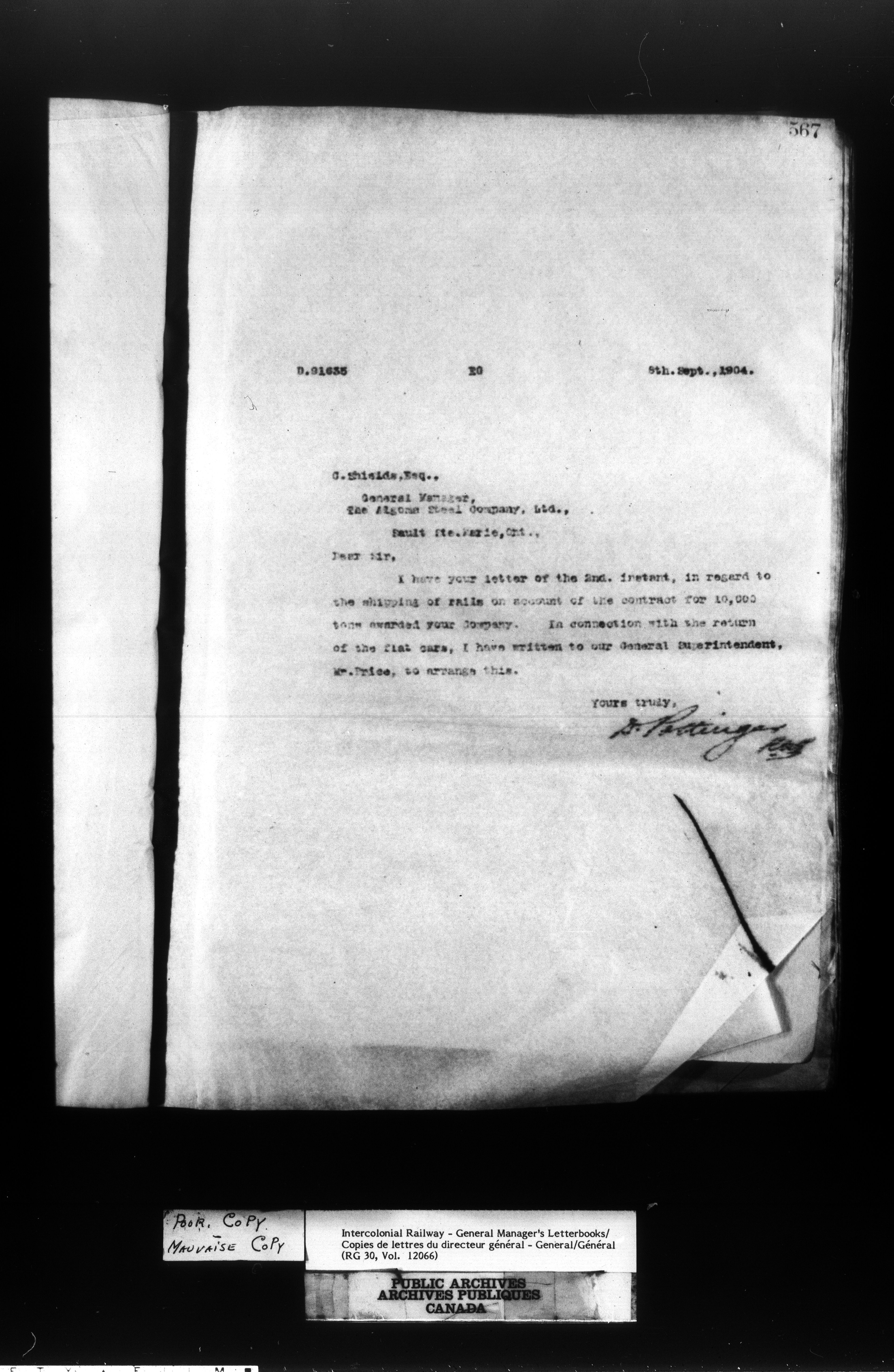 Canadian Government Railways : Office of the General Manager, Outward correspondence - 11455
