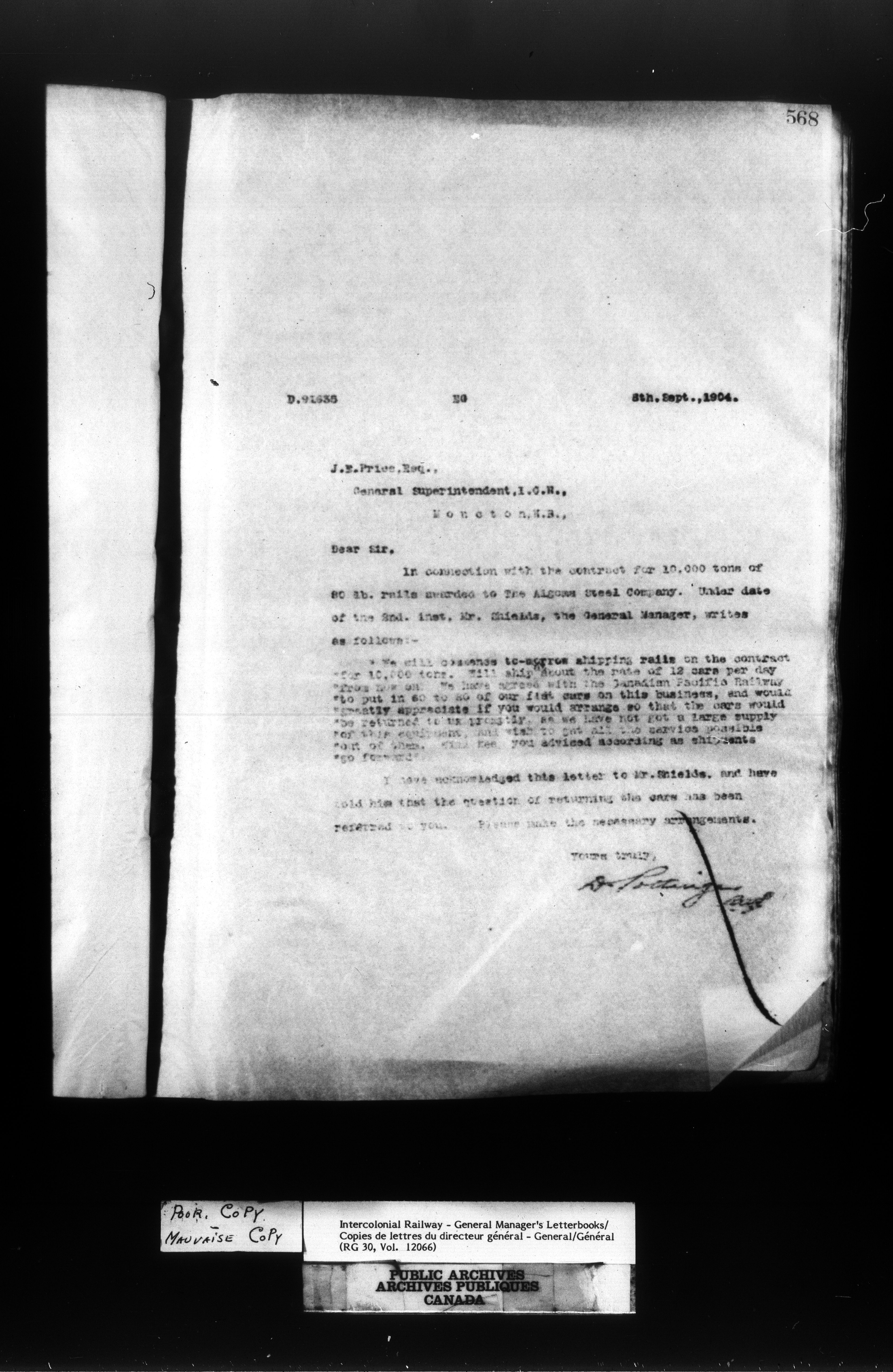 Canadian Government Railways : Office of the General Manager, Outward correspondence - 11455
