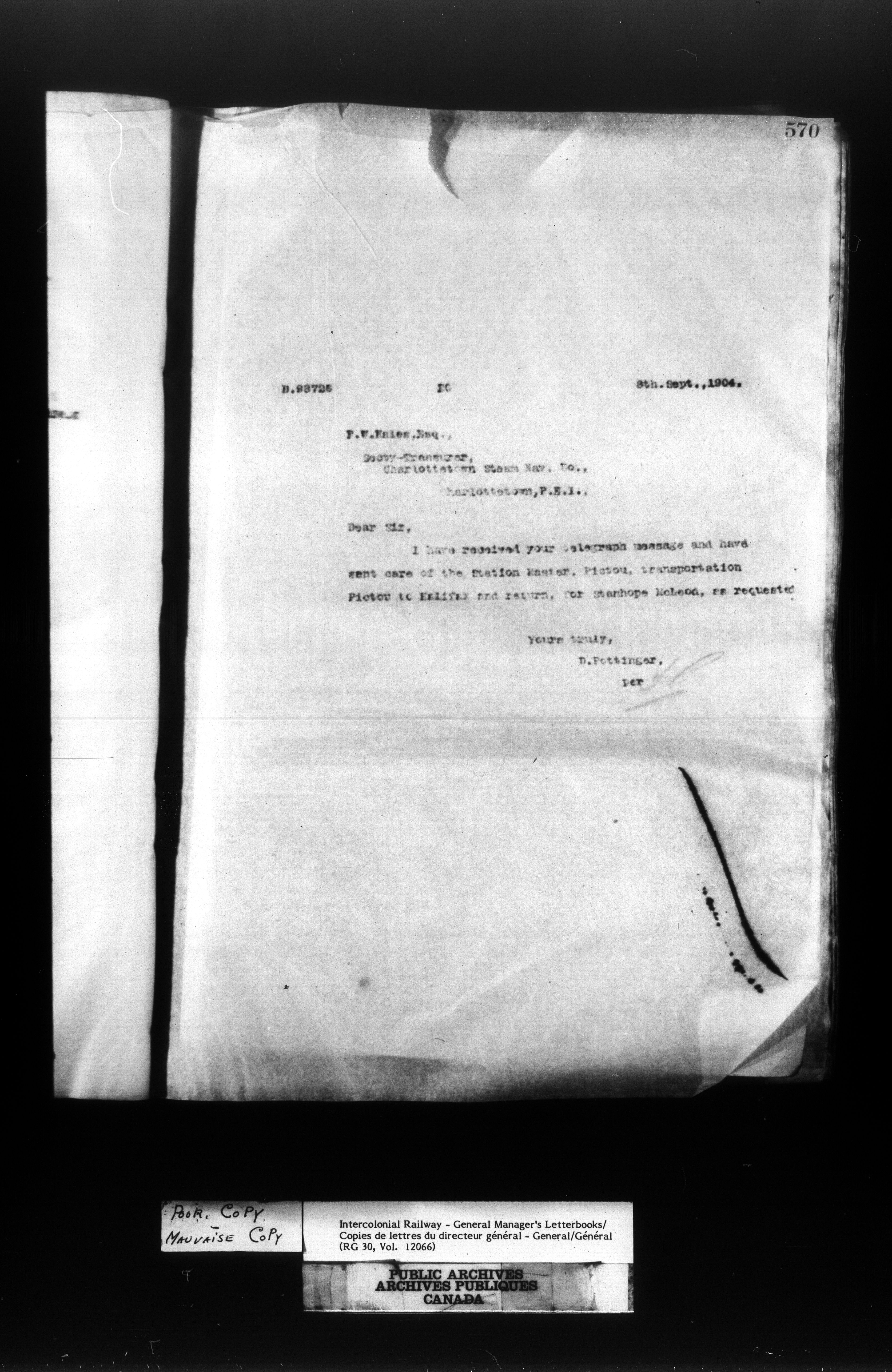 Canadian Government Railways : Office of the General Manager, Outward correspondence - 11455