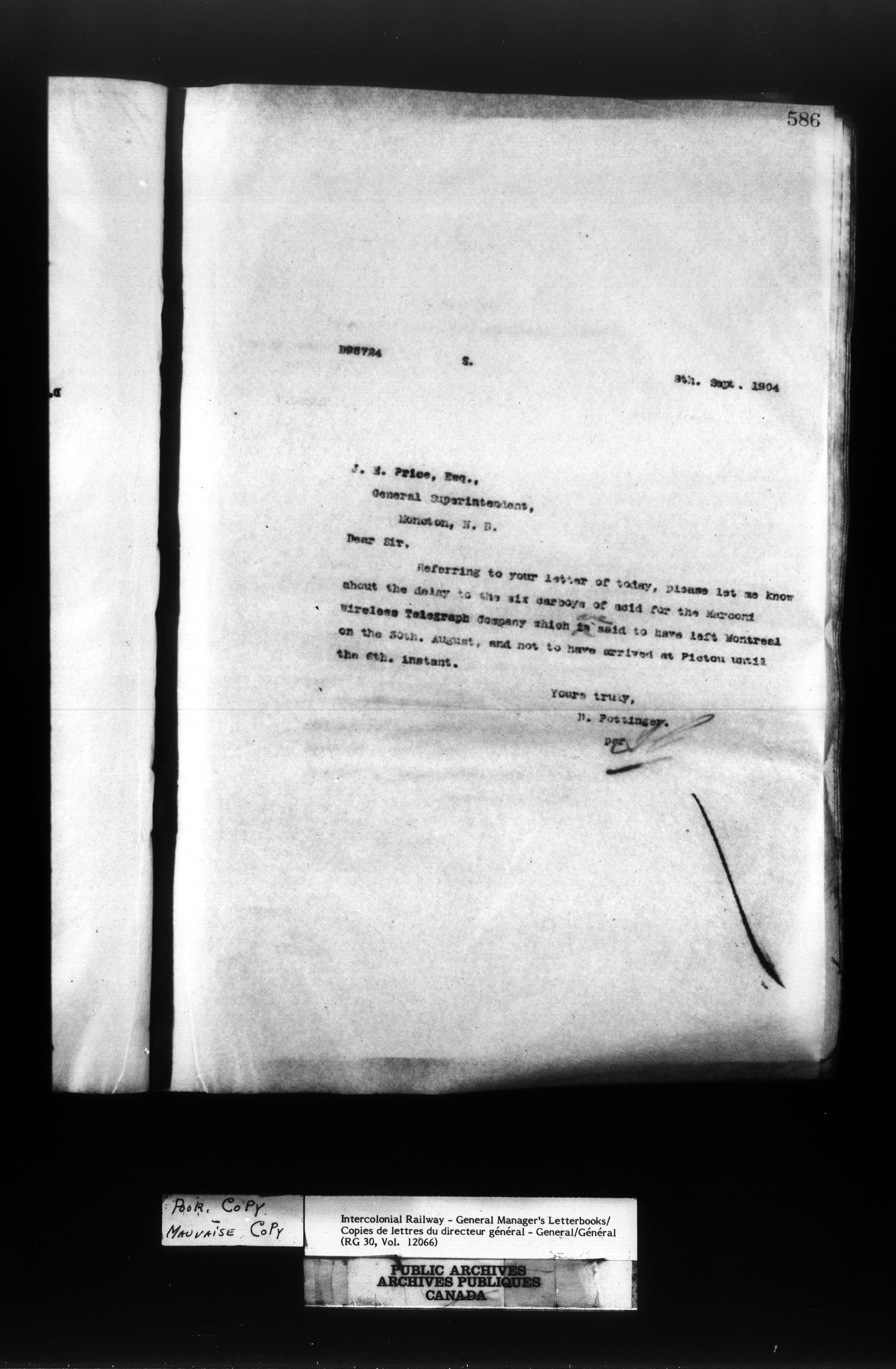 Canadian Government Railways : Office of the General Manager, Outward correspondence - 11455