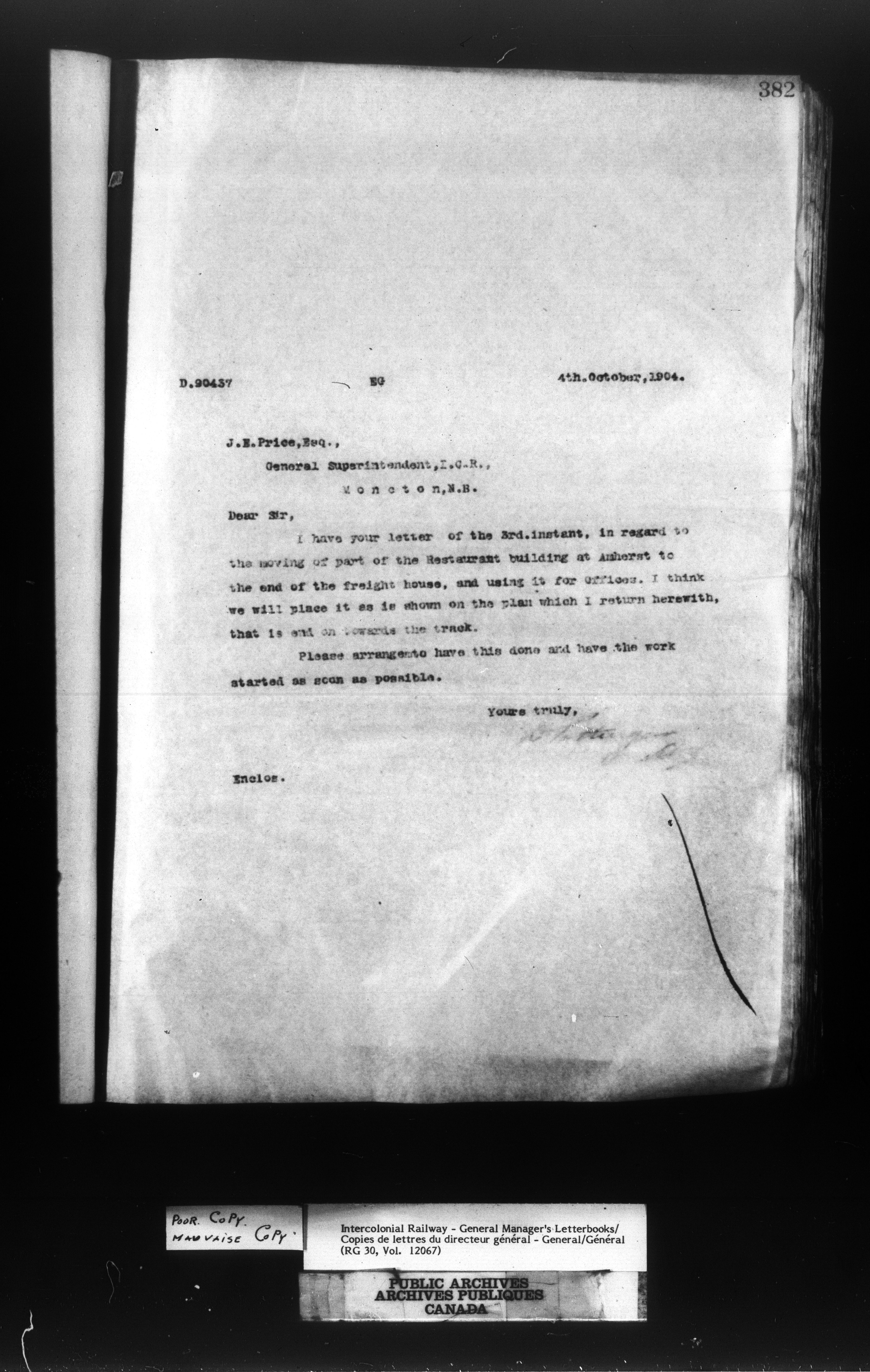 Canadian Government Railways : Office of the General Manager, Outward correspondence - 11456