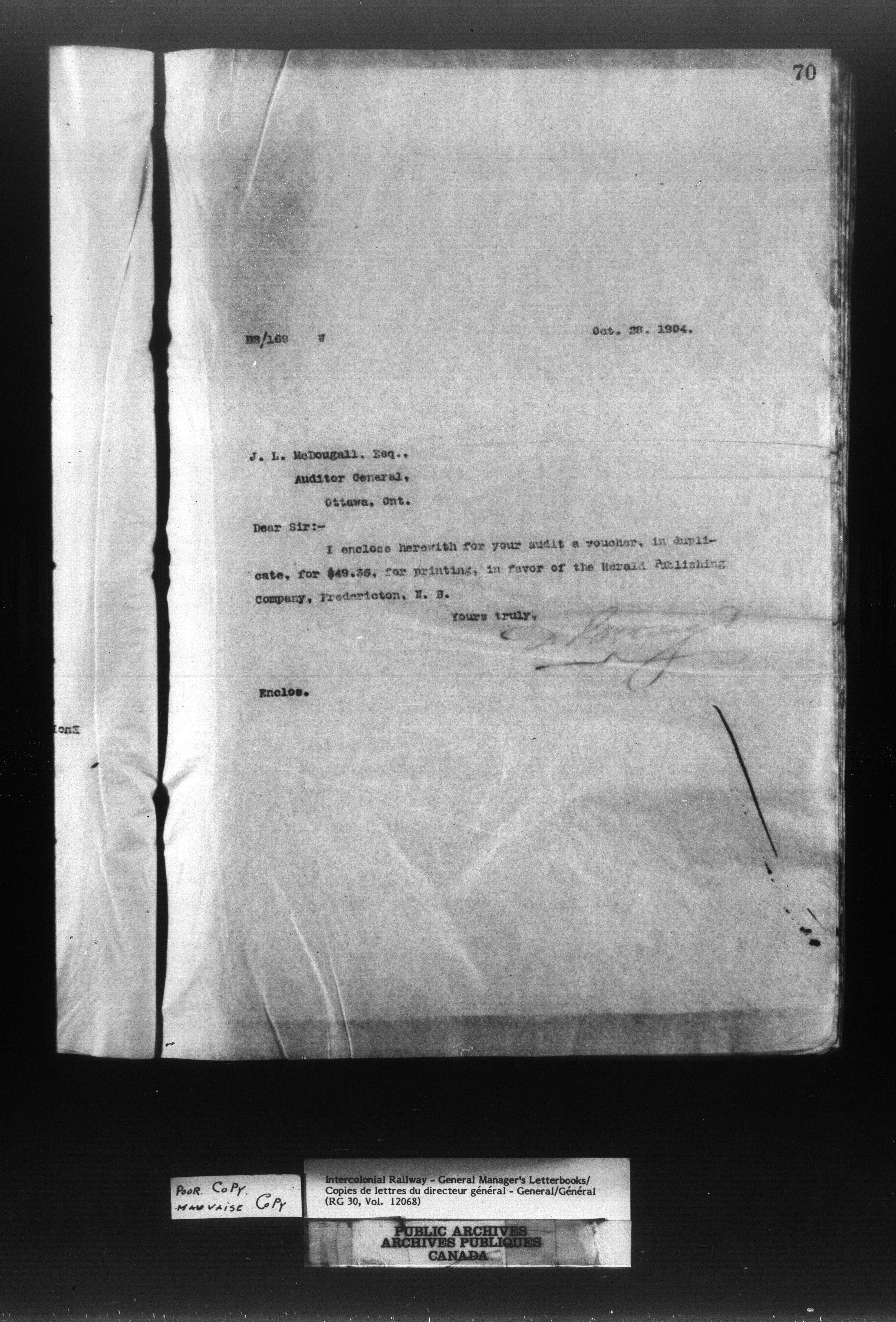 Canadian Government Railways : Office of the General Manager, Outward correspondence - 11457