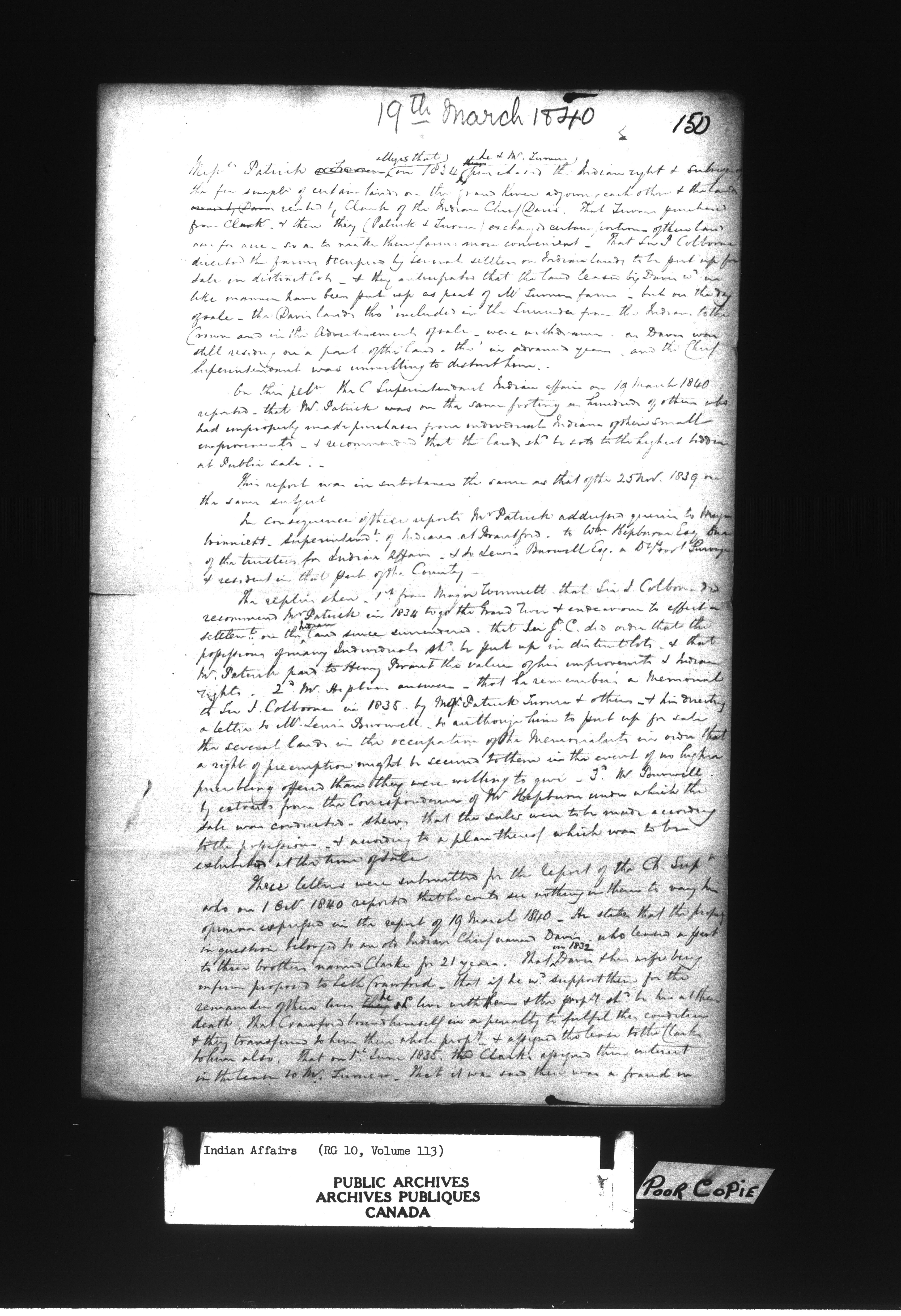 General pre-Confederation Indian Department office records : Departmental organization and investigations : C-11477