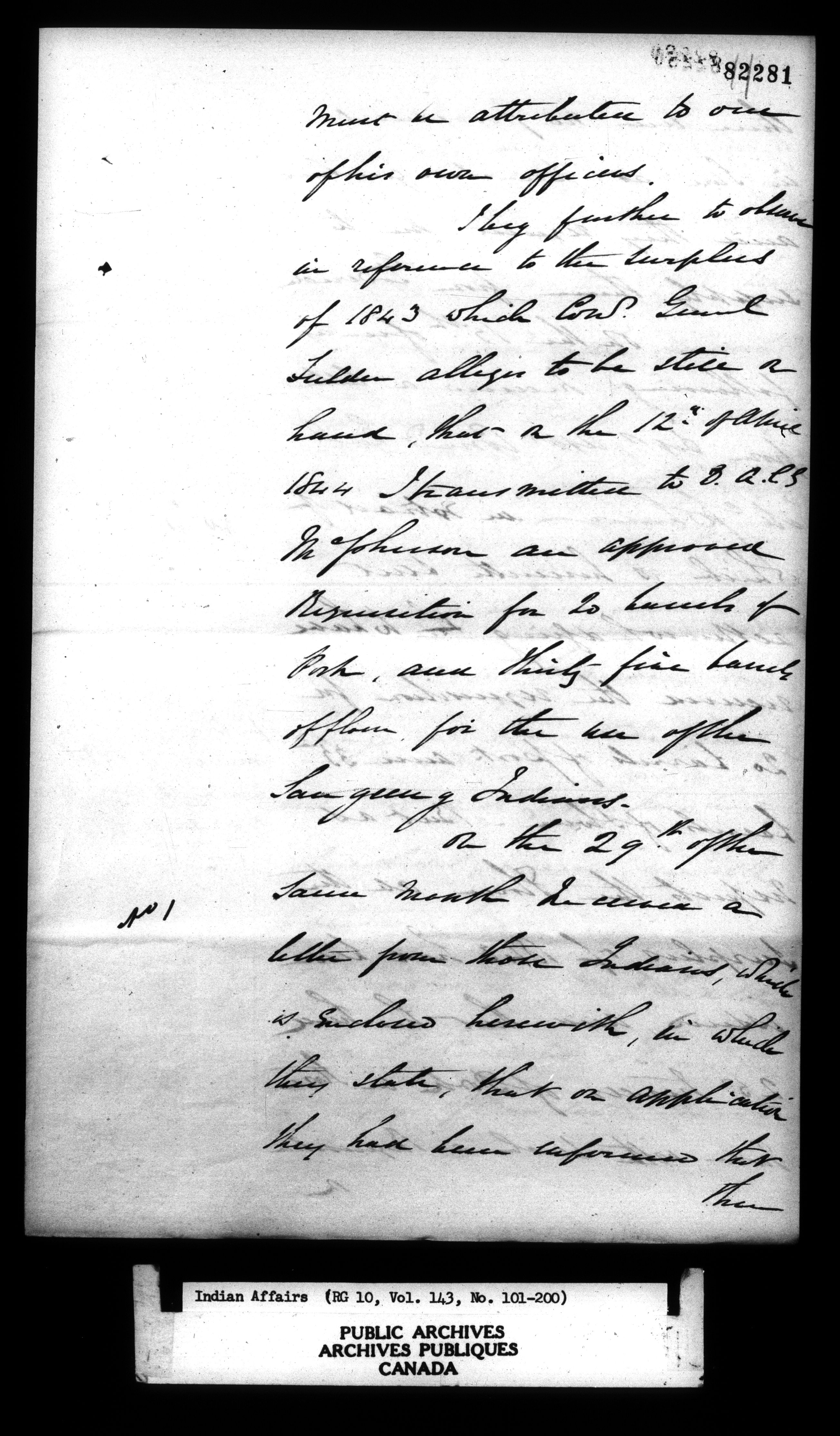 Department of Indian Affairs : Office of the Civil Secretary in the Province of Canada - 11491