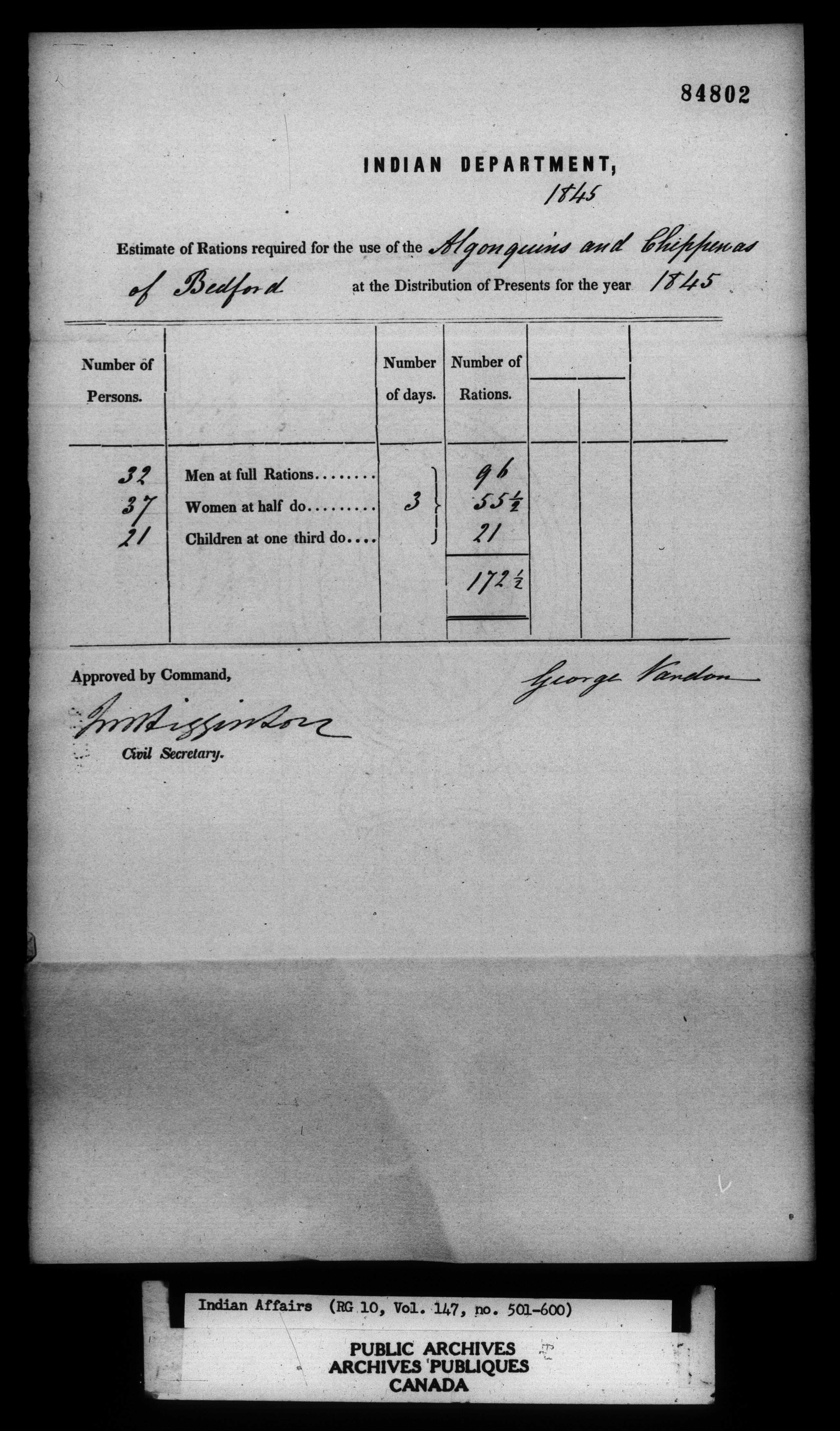 Department of Indian Affairs : Office of the Civil Secretary in the Province of Canada - 11492
