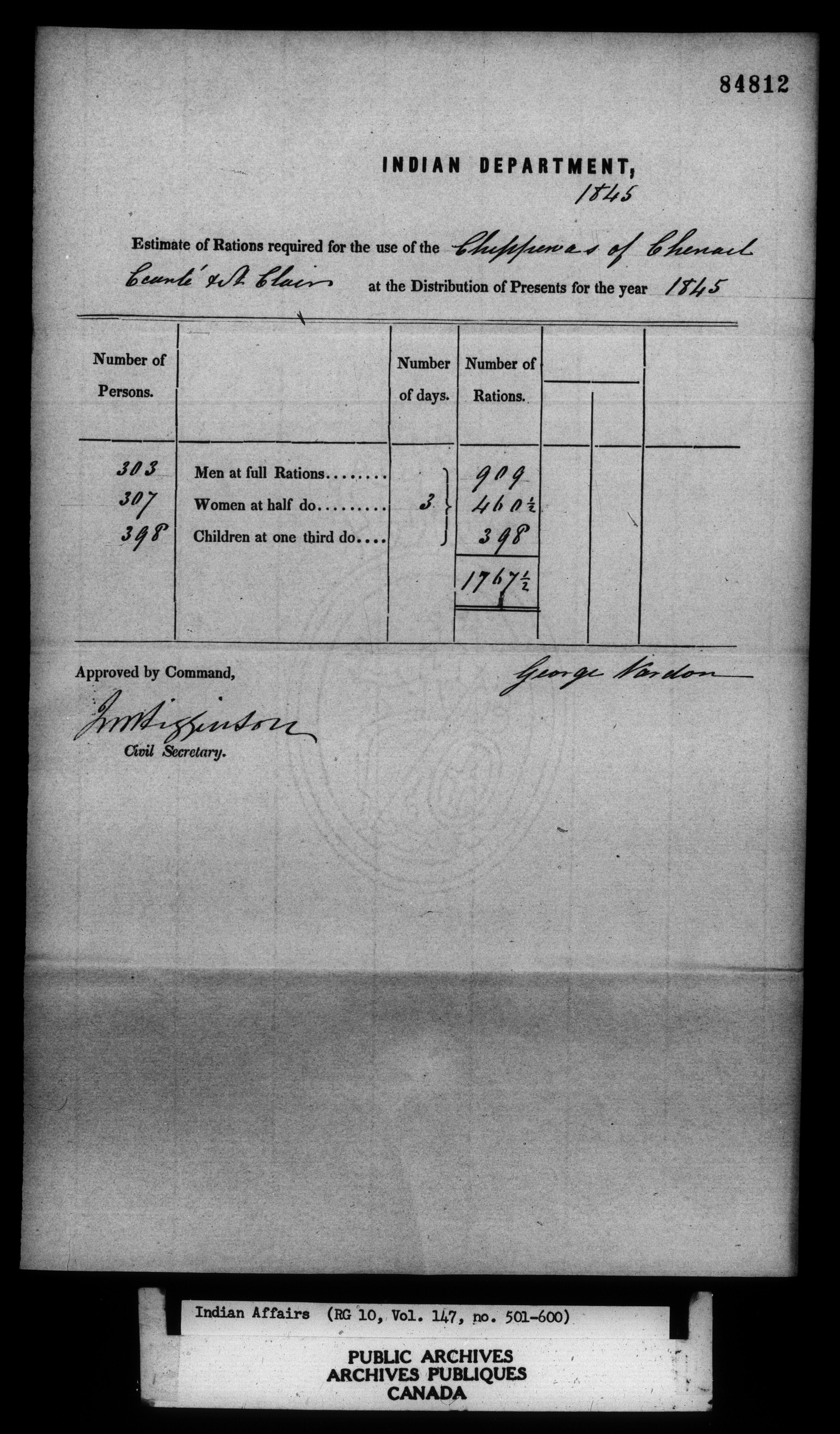 Department of Indian Affairs : Office of the Civil Secretary in the Province of Canada - 11492