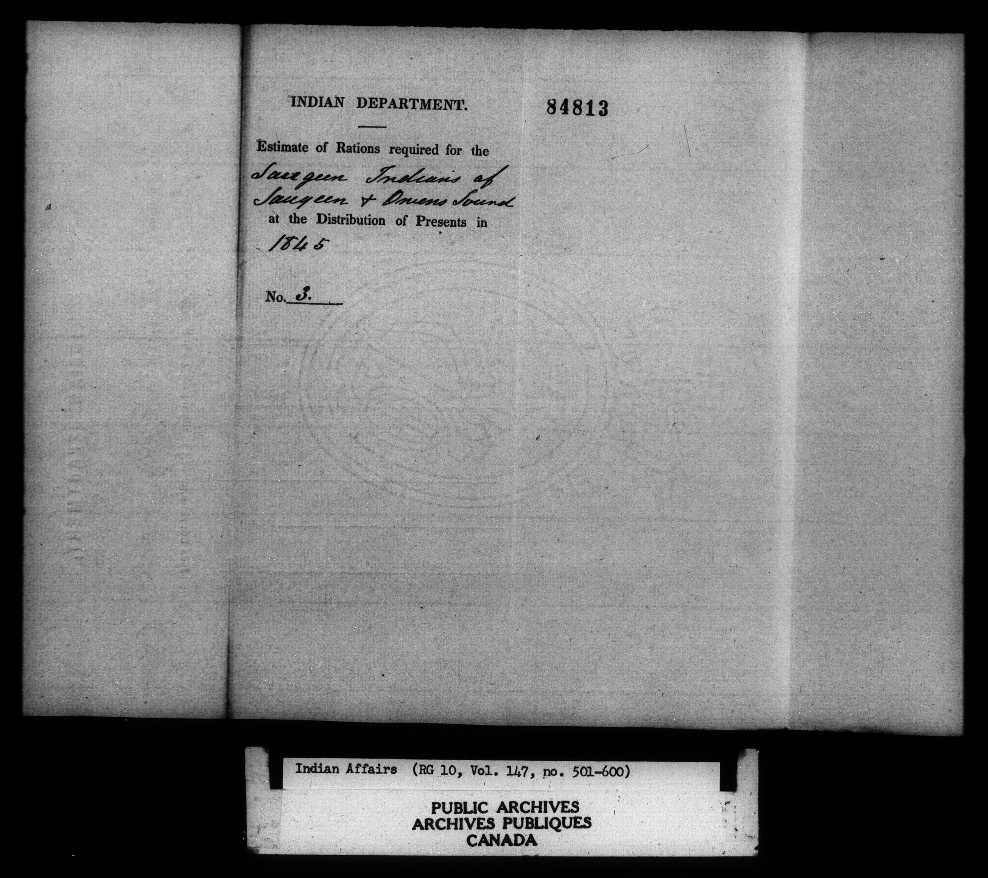 Department of Indian Affairs : Office of the Civil Secretary in the Province of Canada - 11492