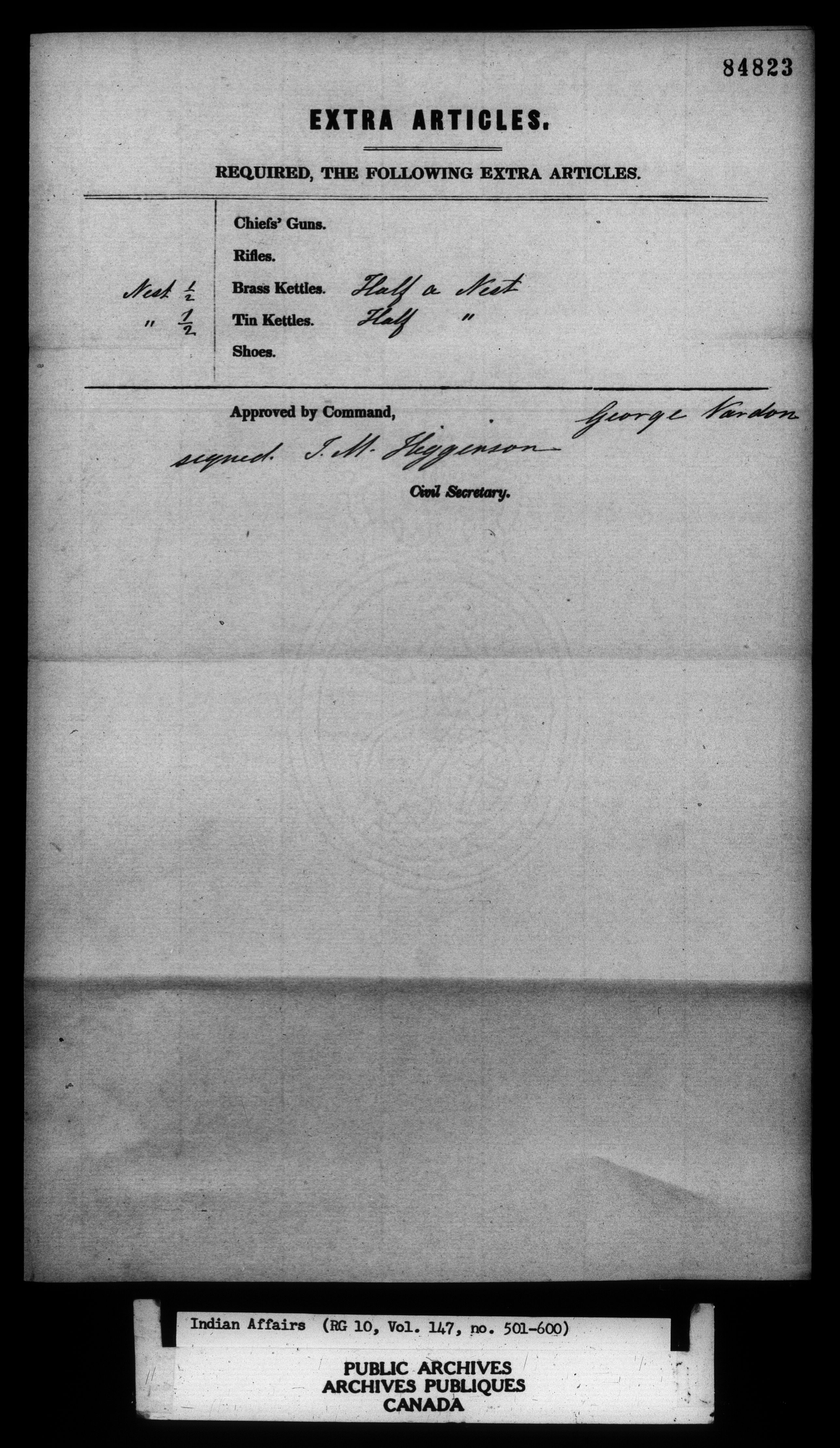 Department of Indian Affairs : Office of the Civil Secretary in the Province of Canada - 11492