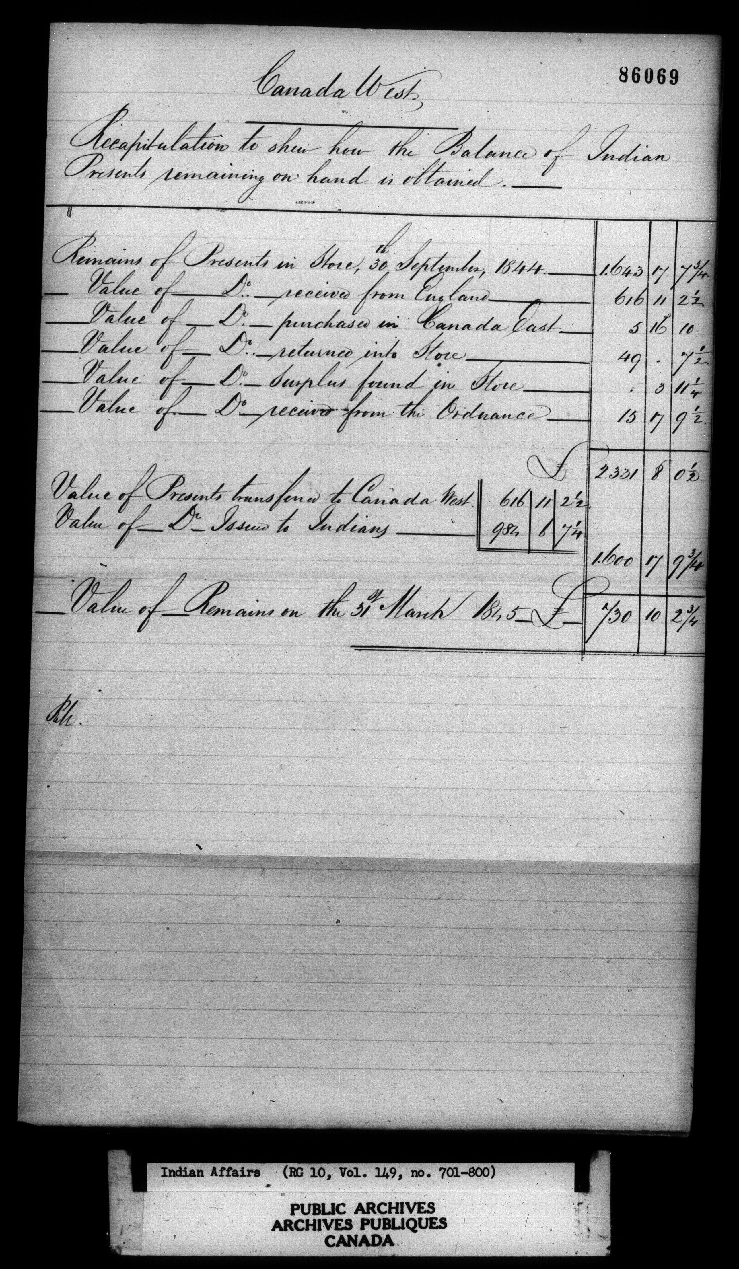 Department of Indian Affairs : Office of the Civil Secretary in the Province of Canada - 11493