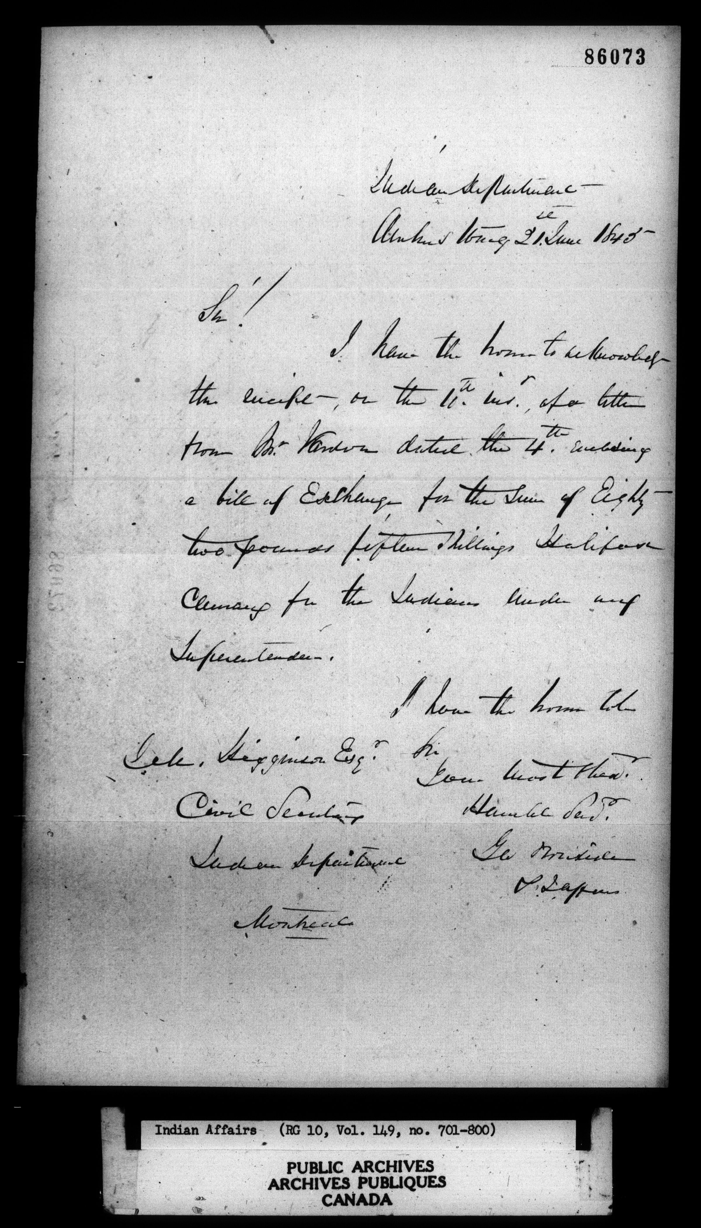 Department of Indian Affairs : Office of the Civil Secretary in the Province of Canada - 11493