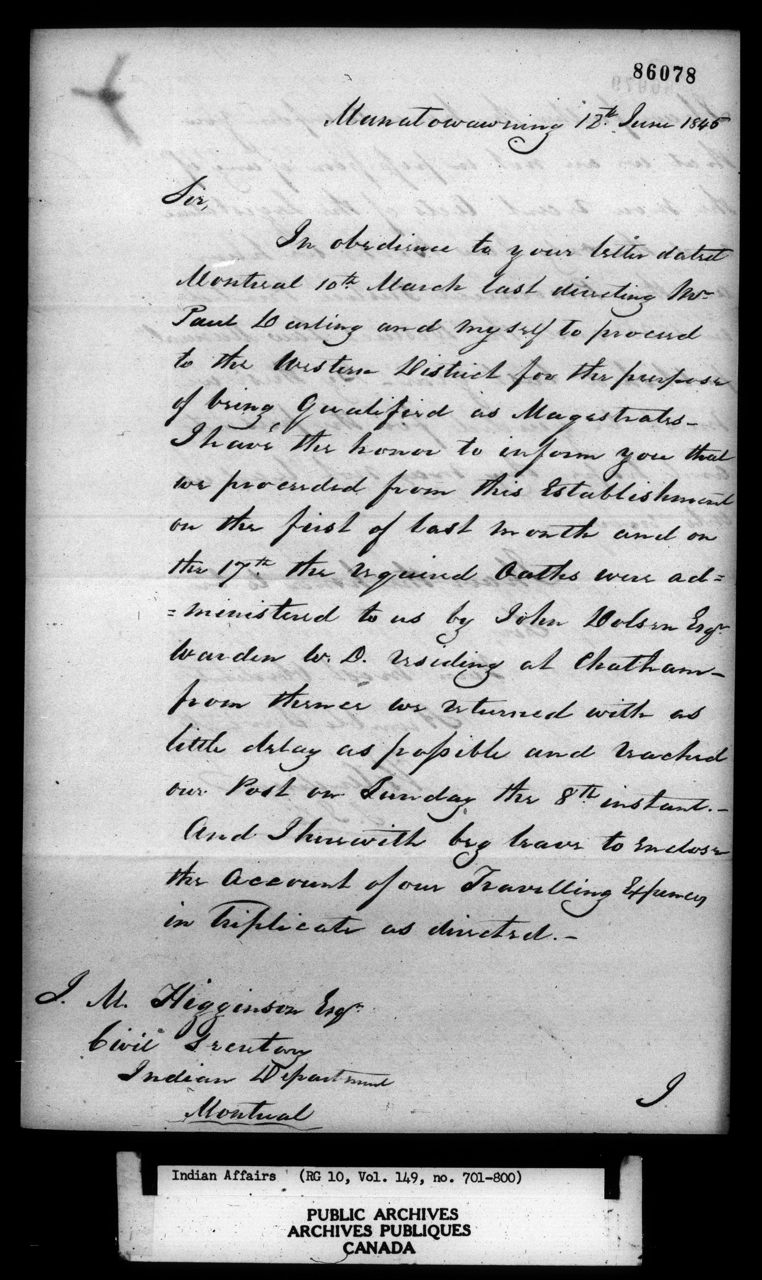 Department of Indian Affairs : Office of the Civil Secretary in the Province of Canada - 11493