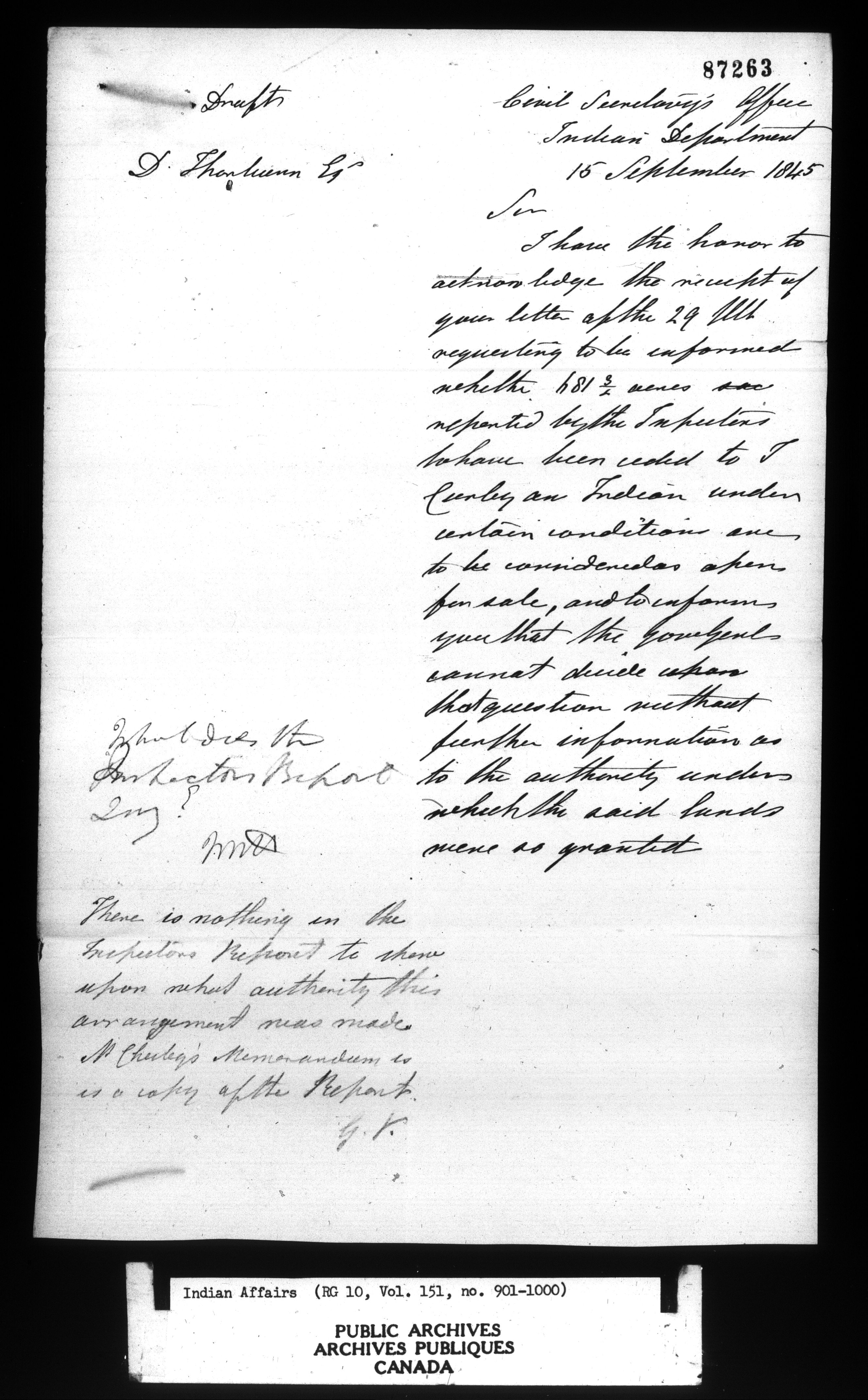 Department of Indian Affairs : Office of the Civil Secretary in the Province of Canada - 11494