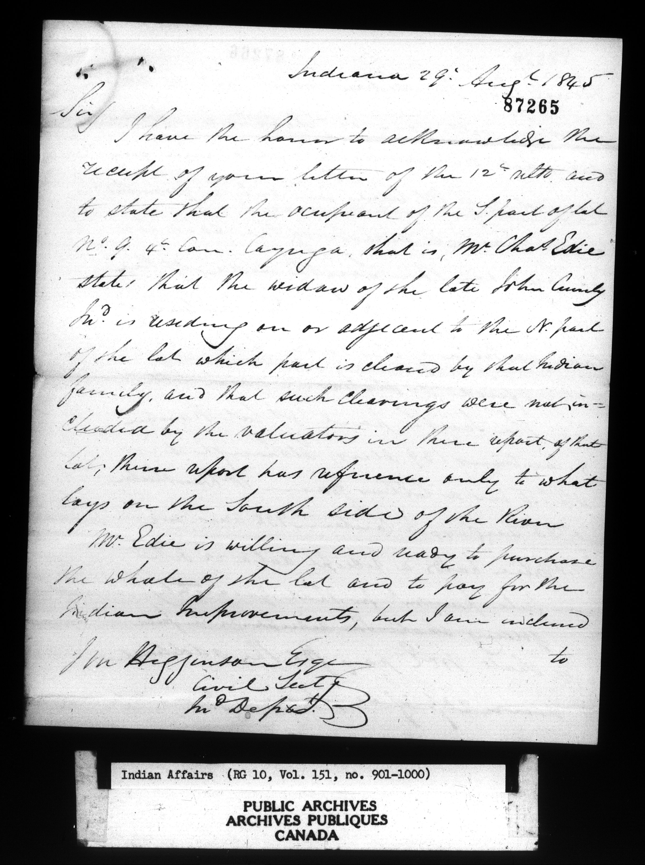 Department of Indian Affairs : Office of the Civil Secretary in the Province of Canada - 11494