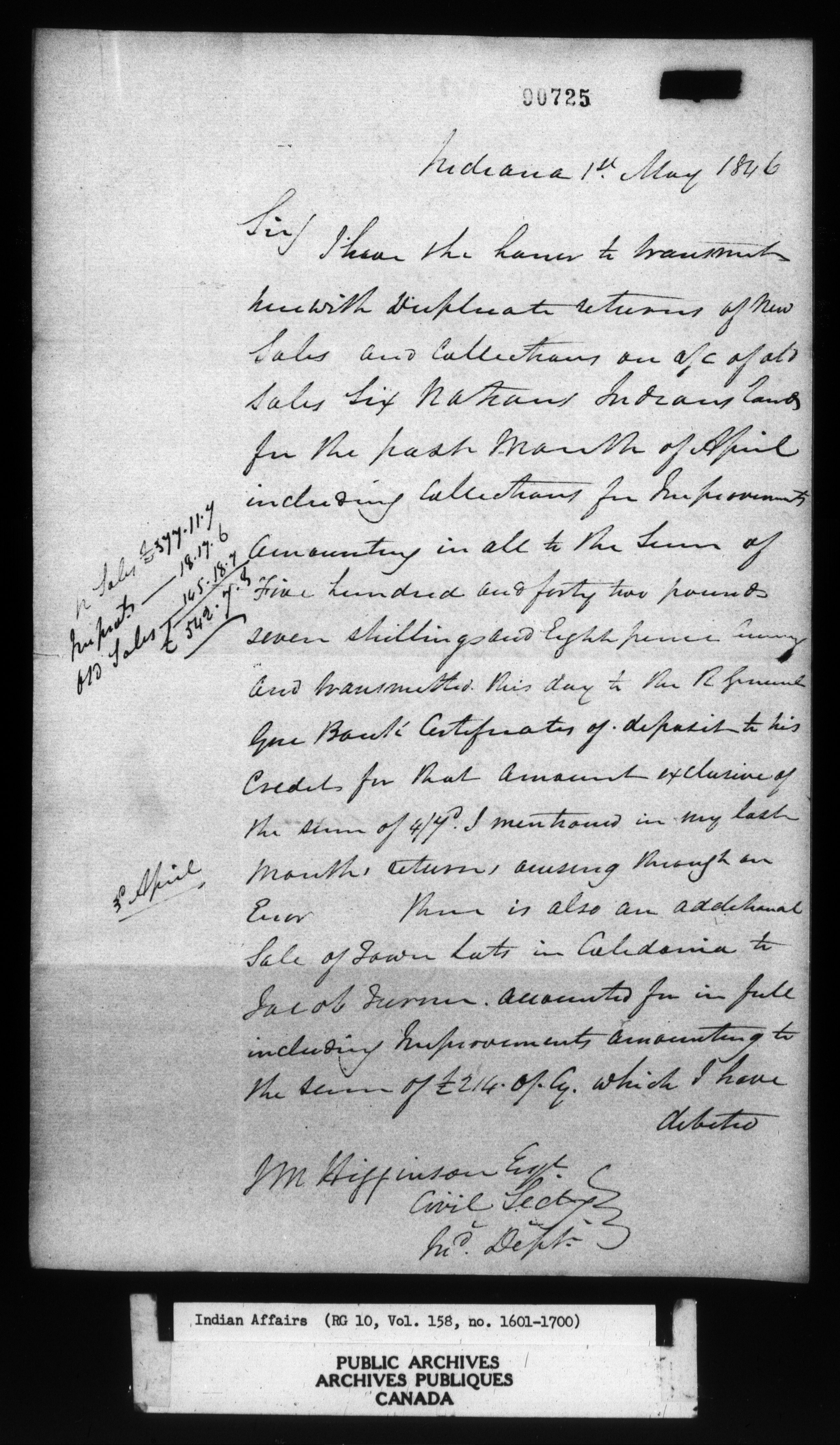 Department of Indian Affairs : Office of the Civil Secretary in the Province of Canada - 11498