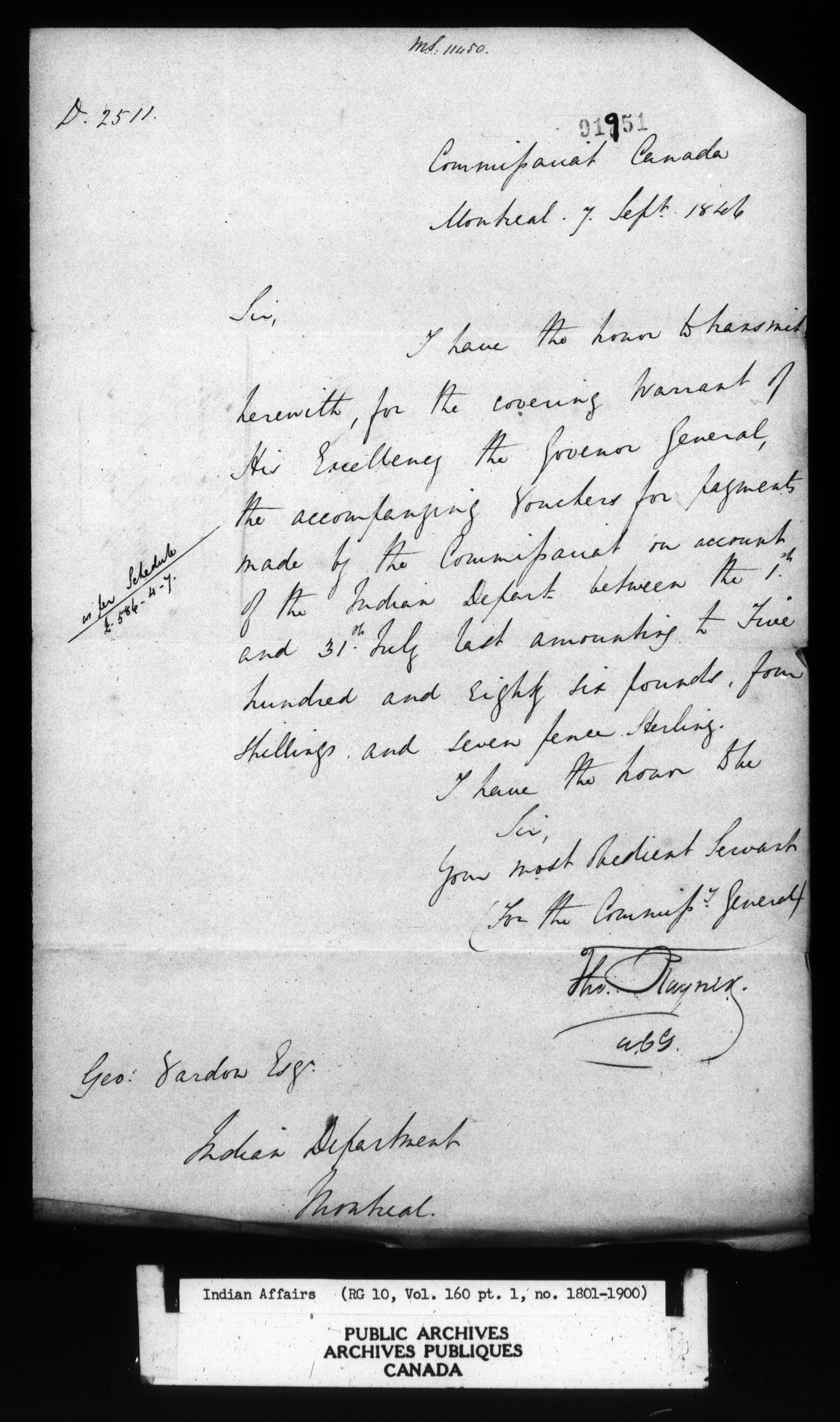Department of Indian Affairs : Office of the Civil Secretary in the Province of Canada - 11498