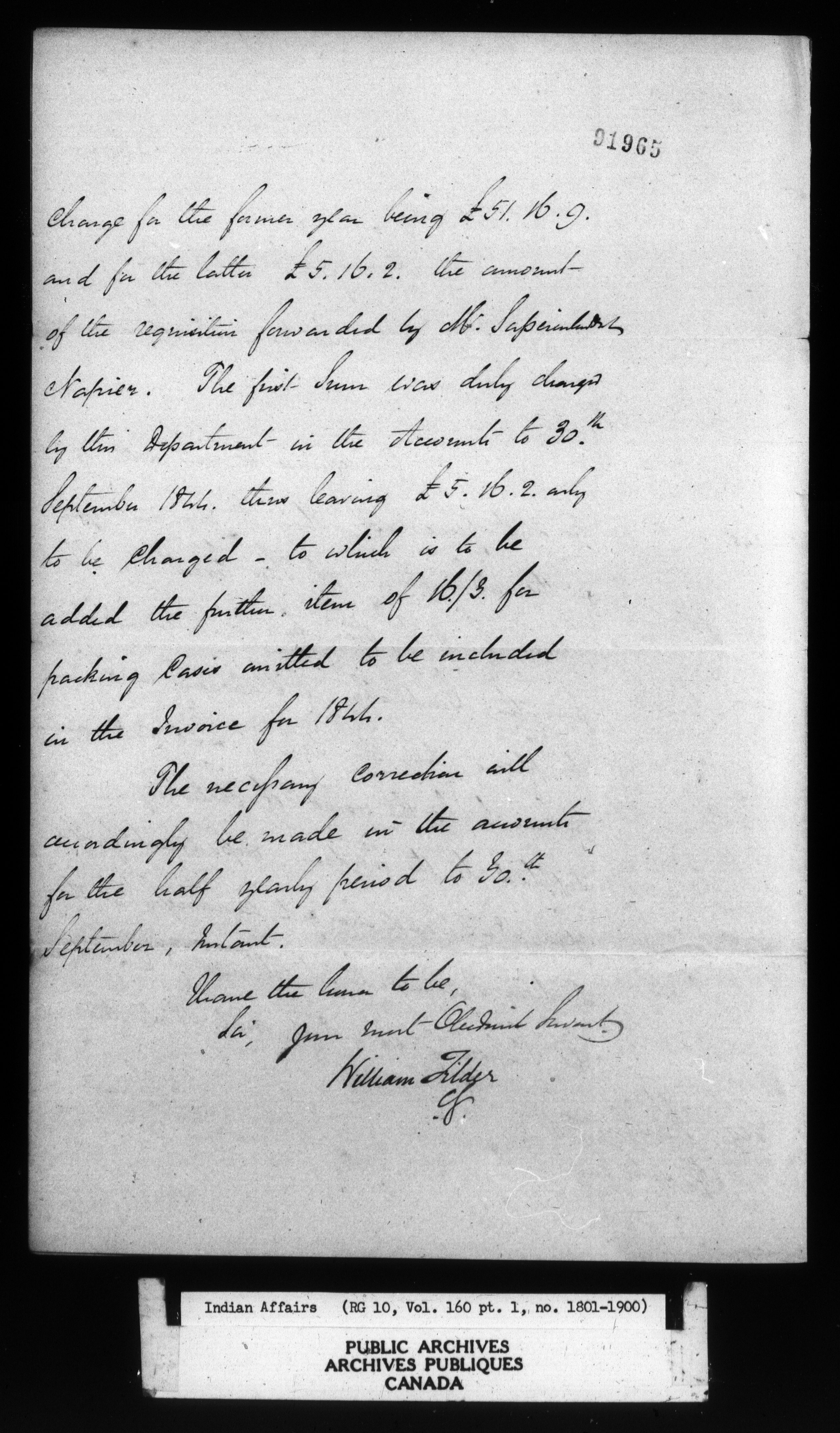Department of Indian Affairs : Office of the Civil Secretary in the Province of Canada - 11498
