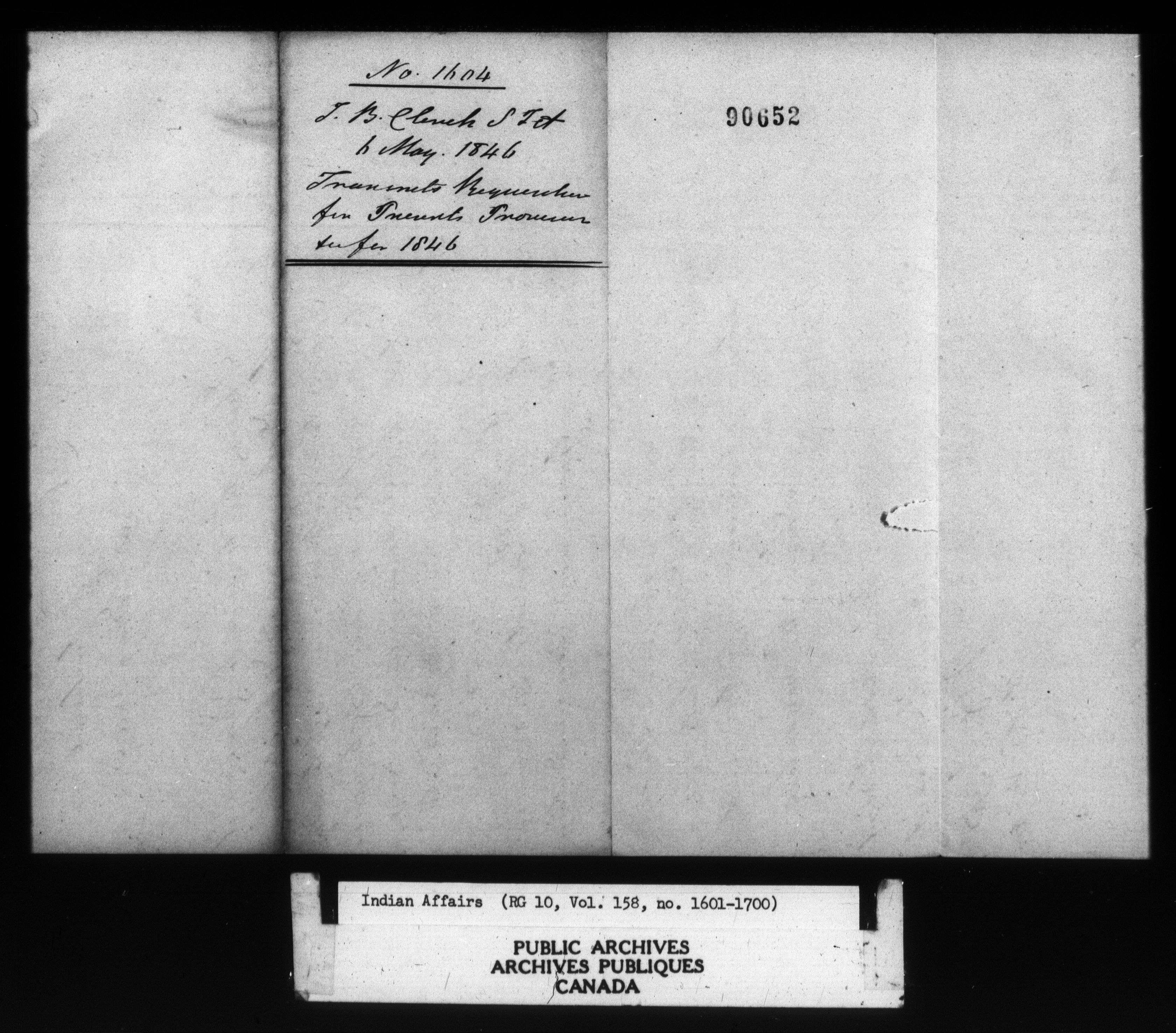 Department of Indian Affairs : Office of the Civil Secretary in the Province of Canada - 11498