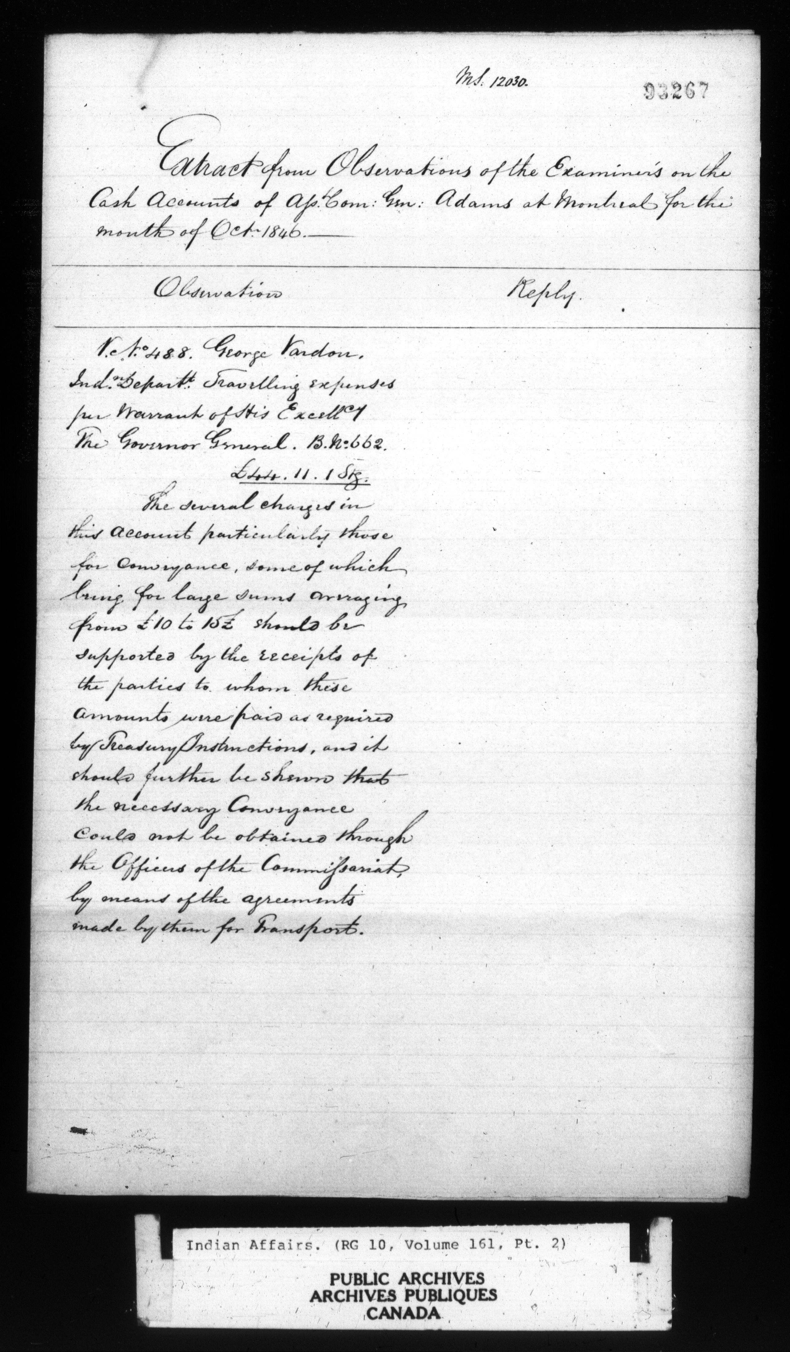 Department of Indian Affairs : Office of the Civil Secretary in the Province of Canada - 11499