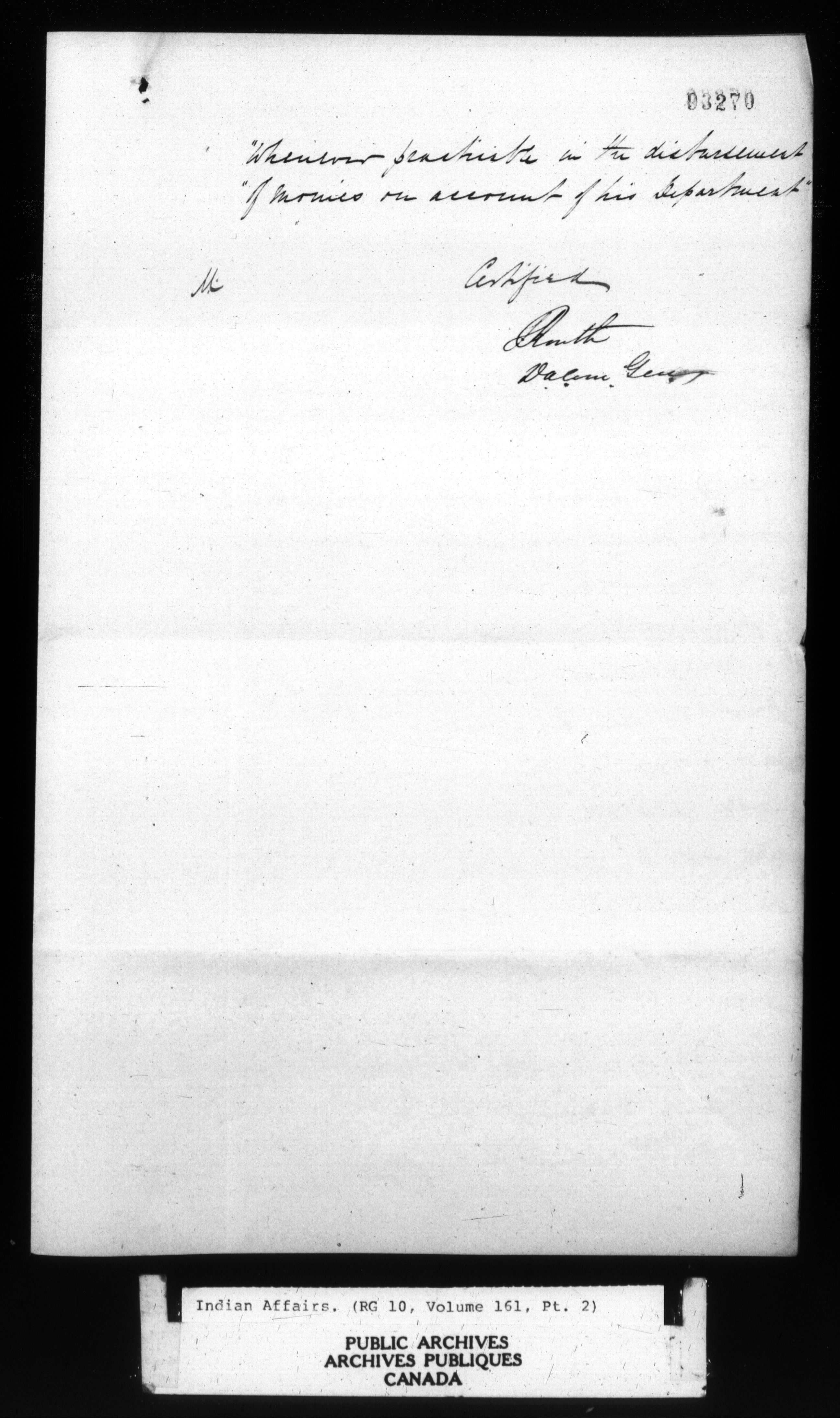 Department of Indian Affairs : Office of the Civil Secretary in the Province of Canada, 1844-1861 : C-11499