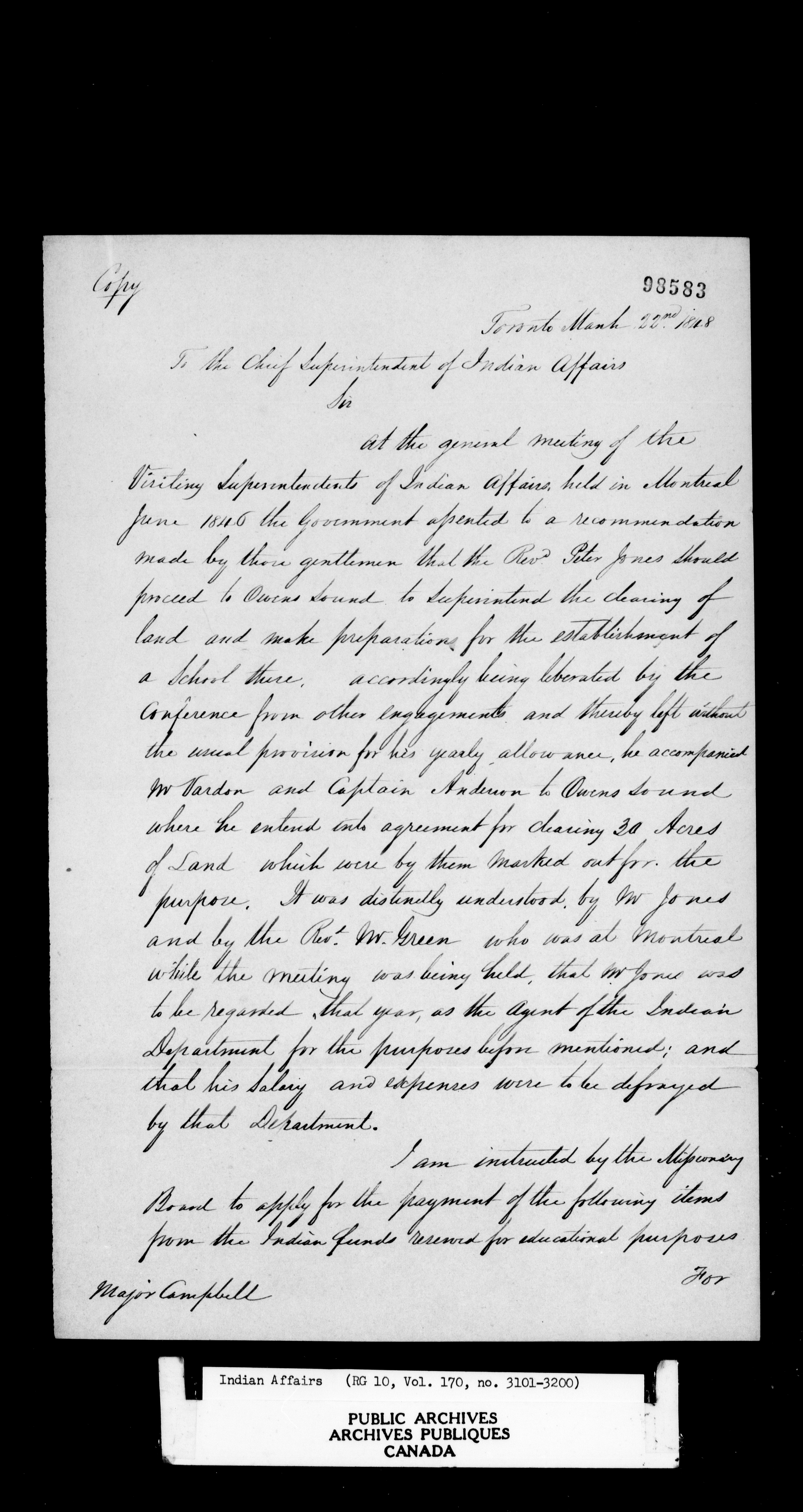 Department of Indian Affairs : Office of the Civil Secretary in the Province of Canada - 11503