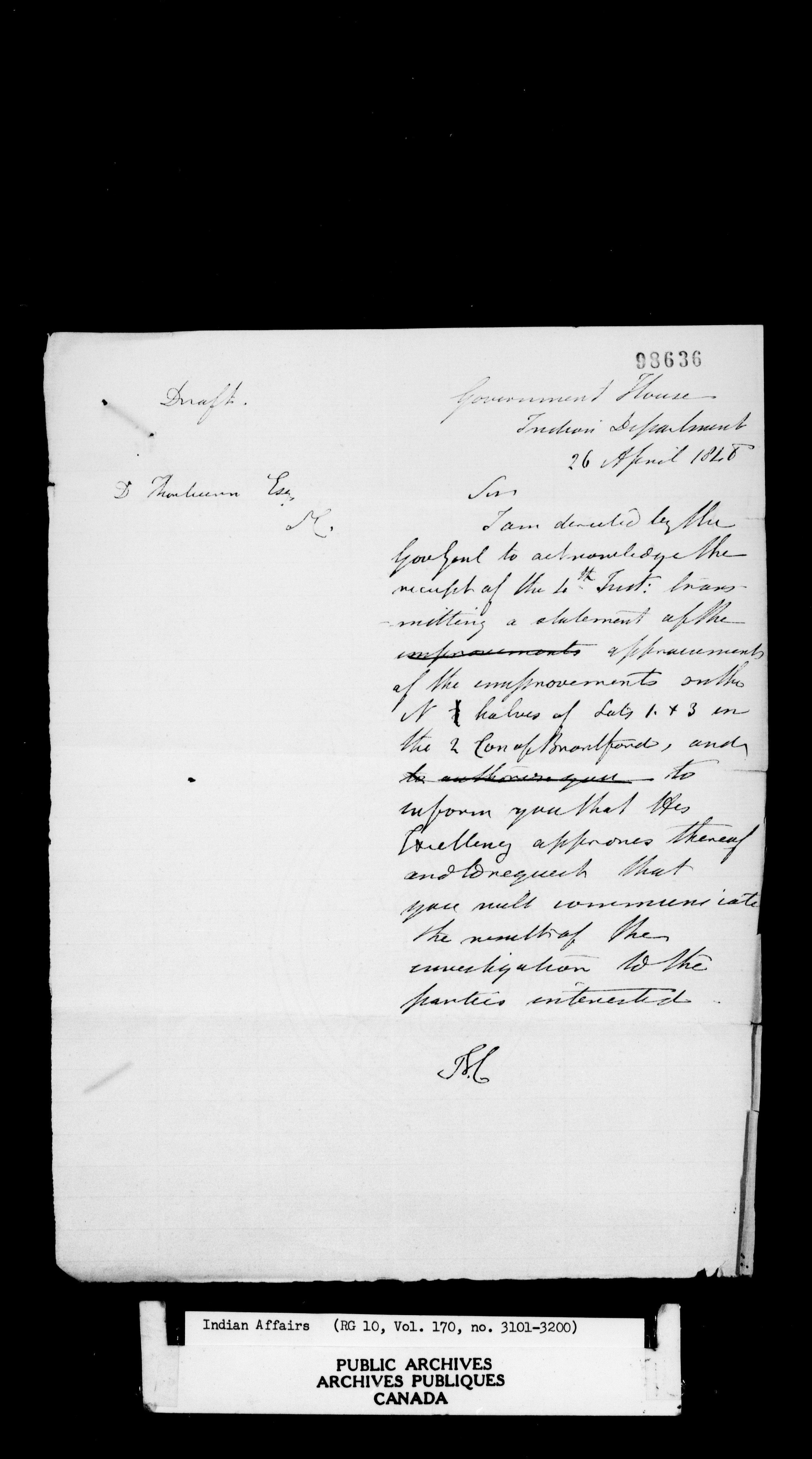 Department of Indian Affairs : Office of the Civil Secretary in the Province of Canada - 11503