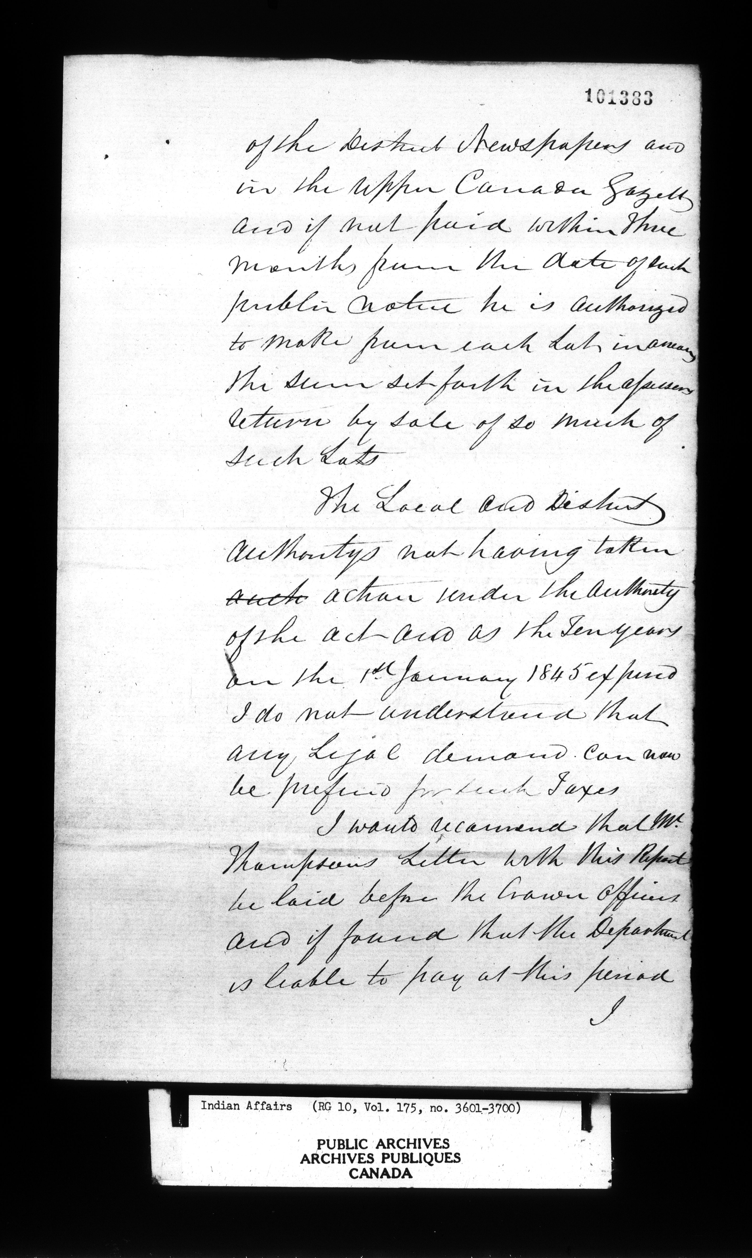 Department of Indian Affairs : Office of the Civil Secretary in the Province of Canada - 11506