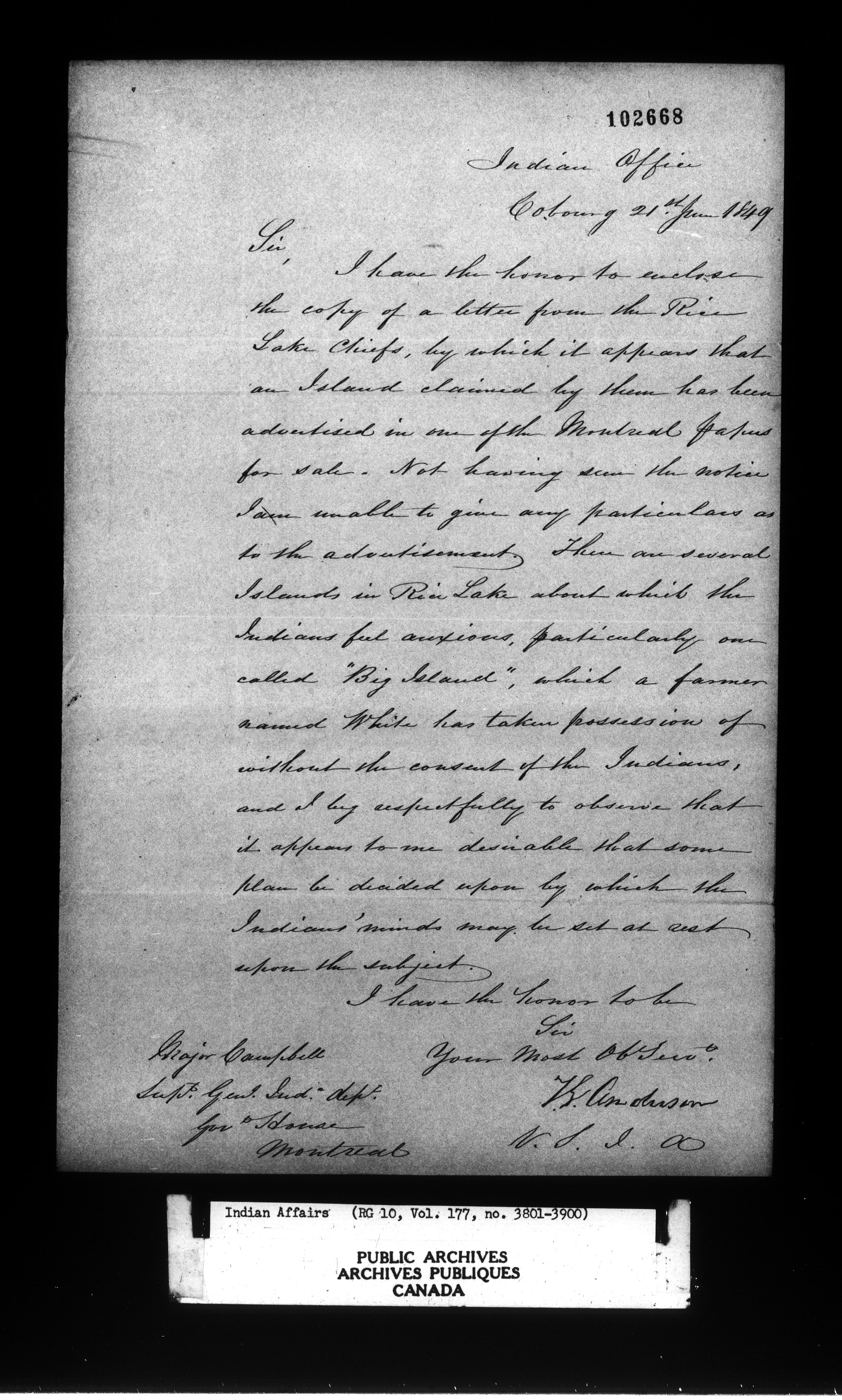 Department of Indian Affairs : Office of the Civil Secretary in the Province of Canada - 11507