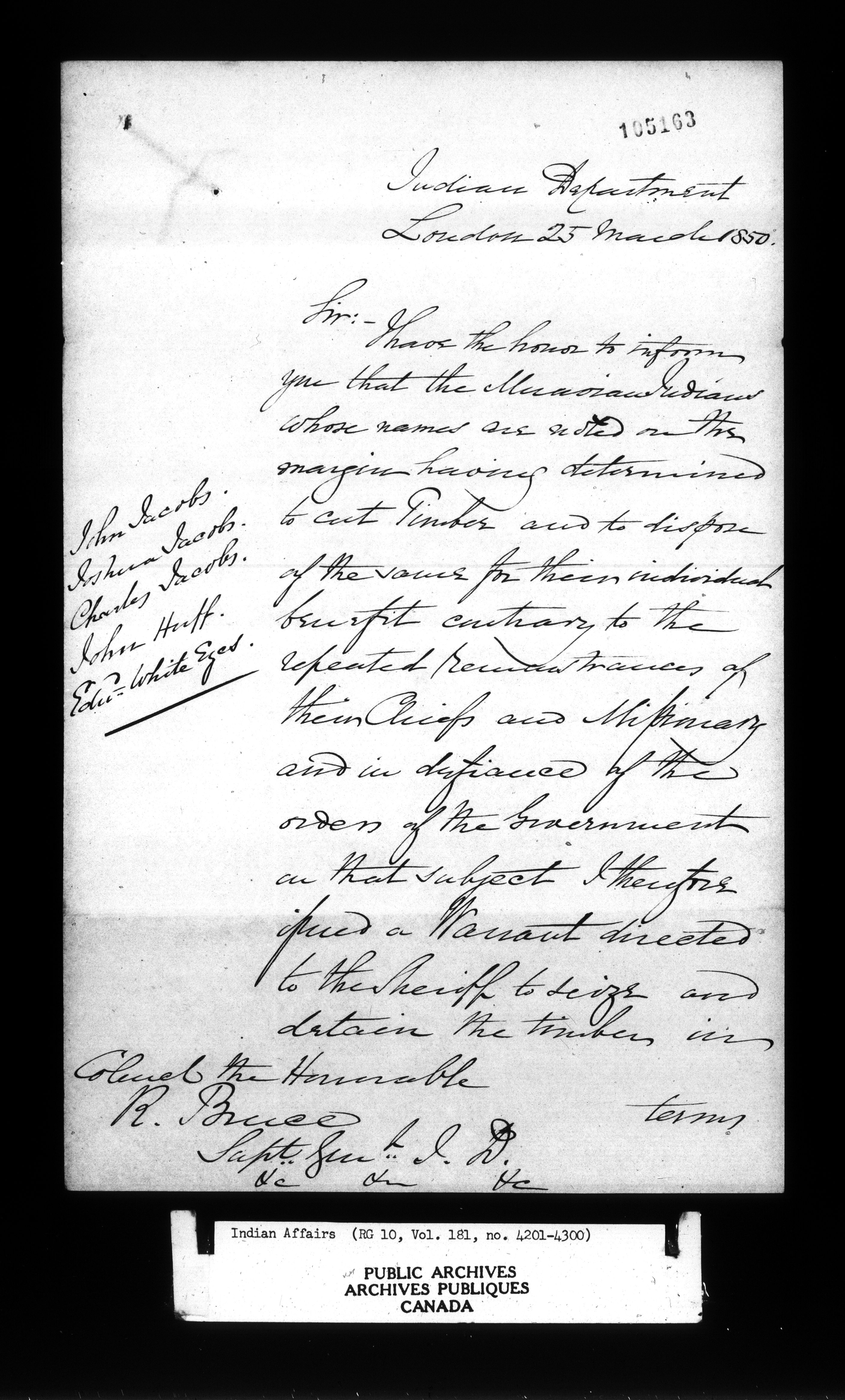 Department of Indian Affairs : Office of the Civil Secretary in the Province of Canada - 11508