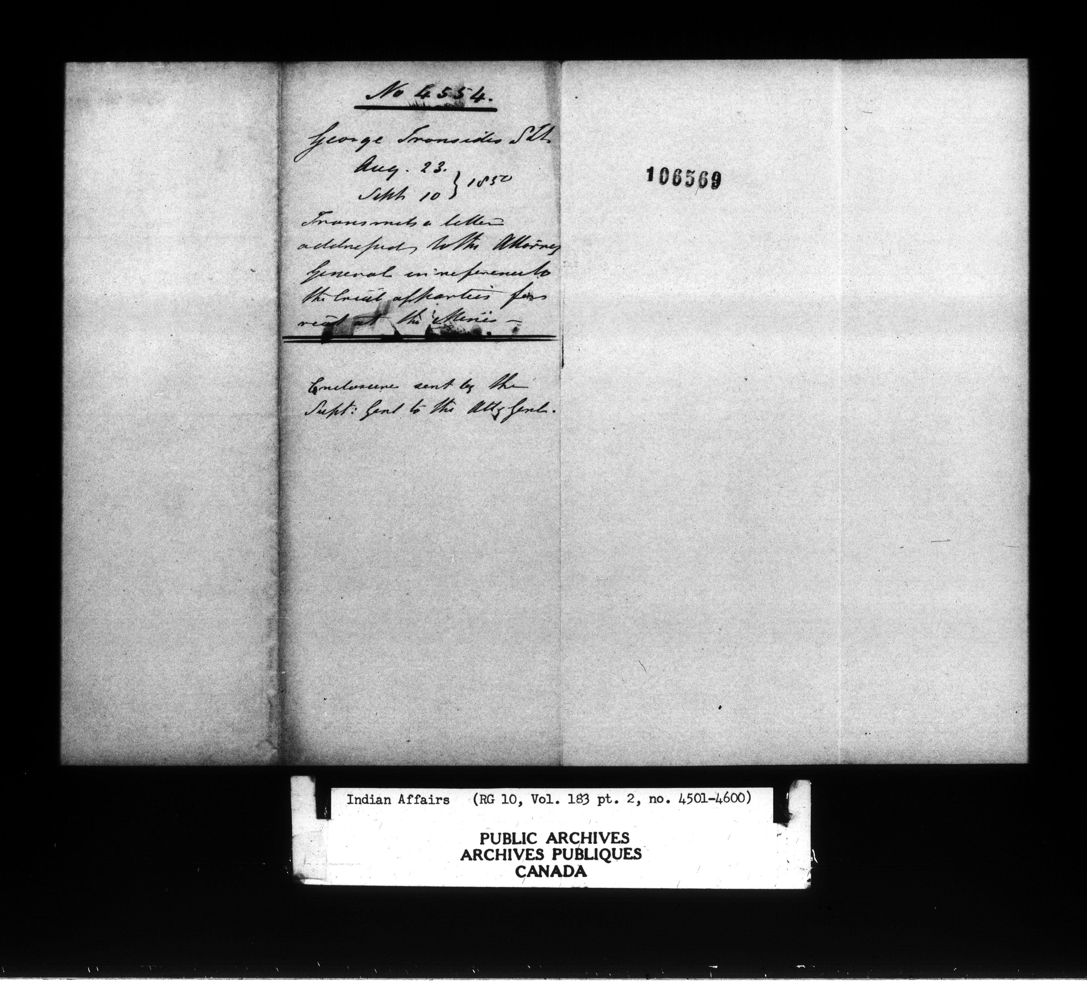 Department of Indian Affairs : Office of the Civil Secretary in the Province of Canada - 11510