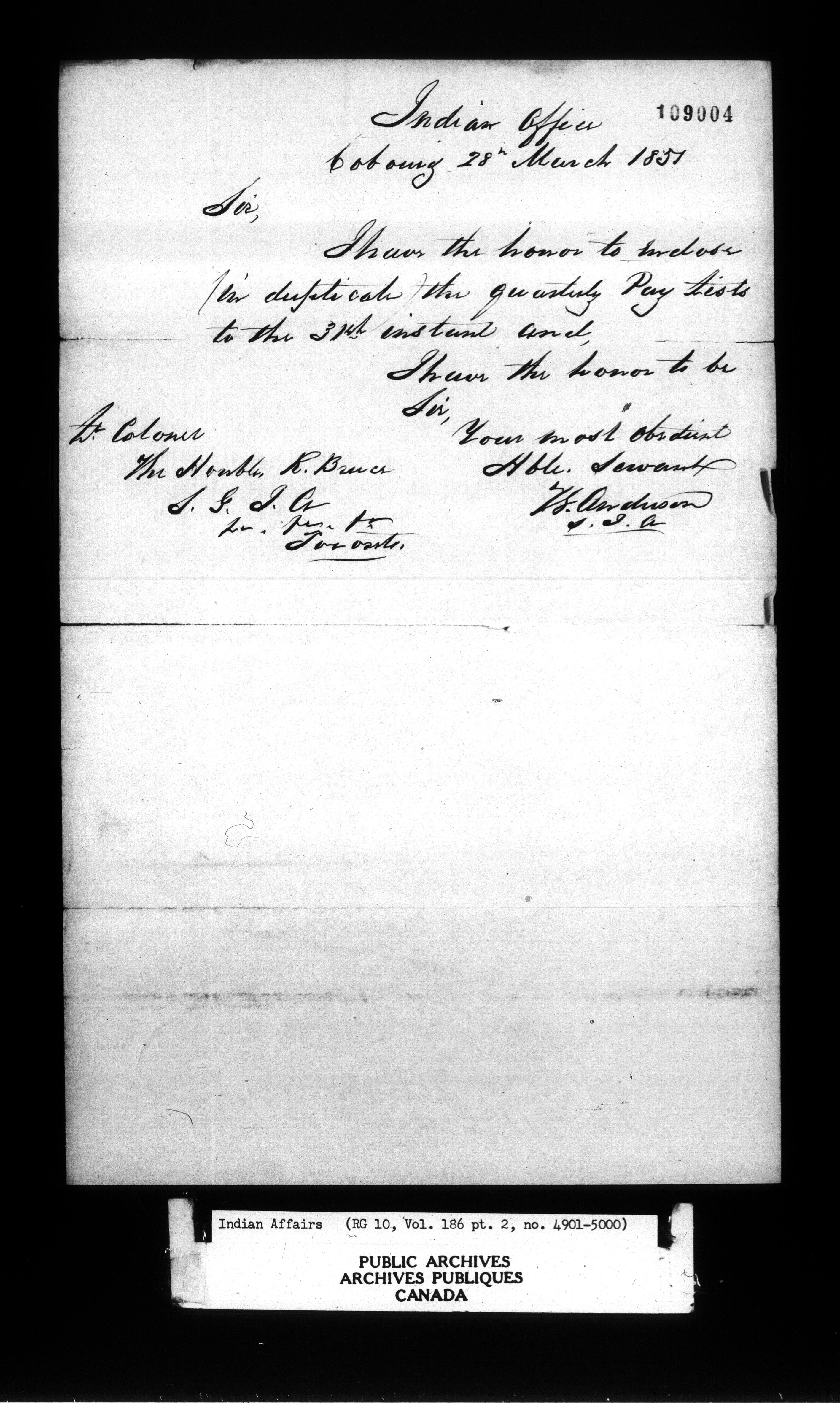 Department of Indian Affairs : Office of the Civil Secretary in the Province of Canada - 11511