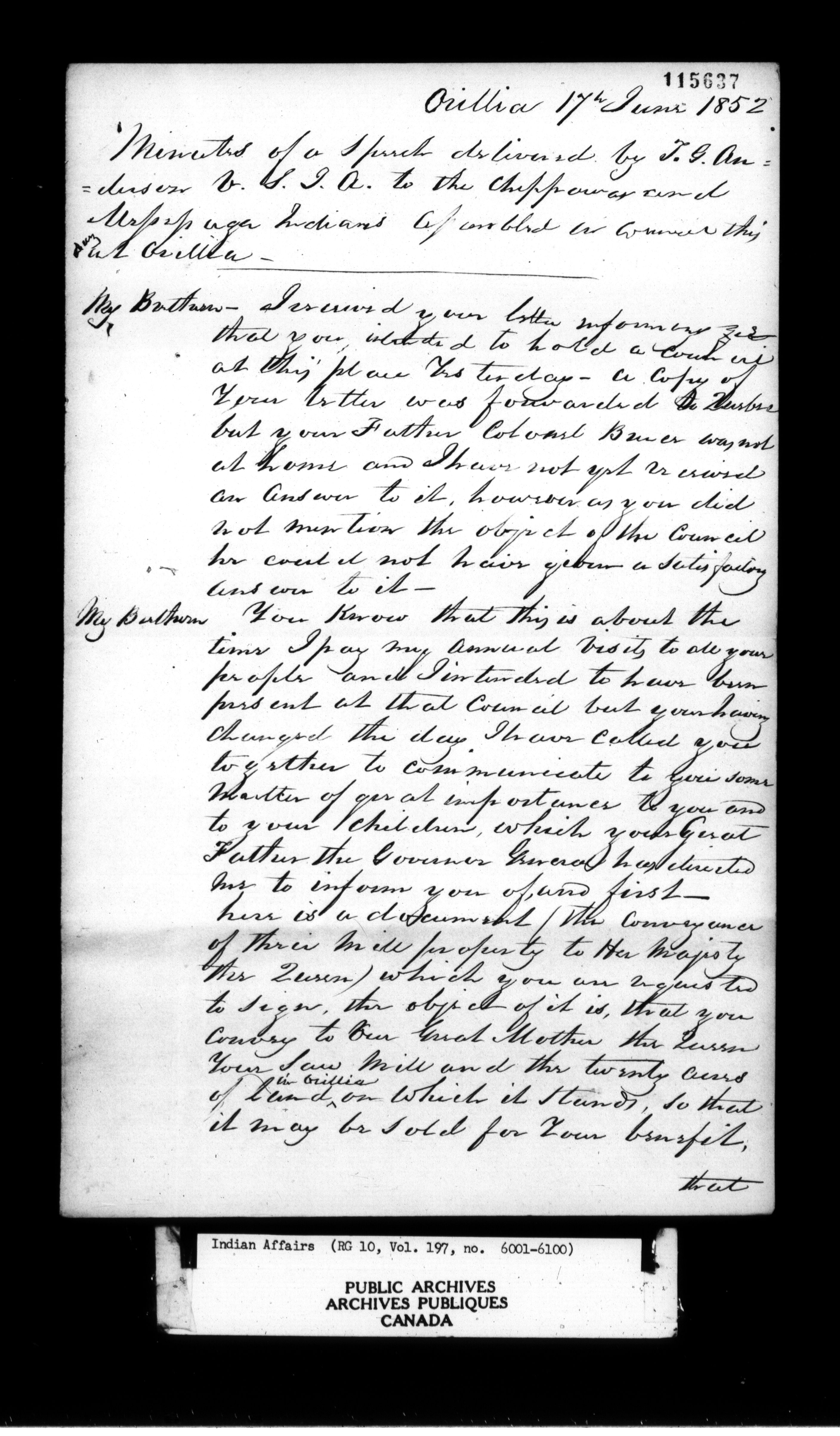 Department of Indian Affairs : Office of the Civil Secretary in the Province of Canada - 11516