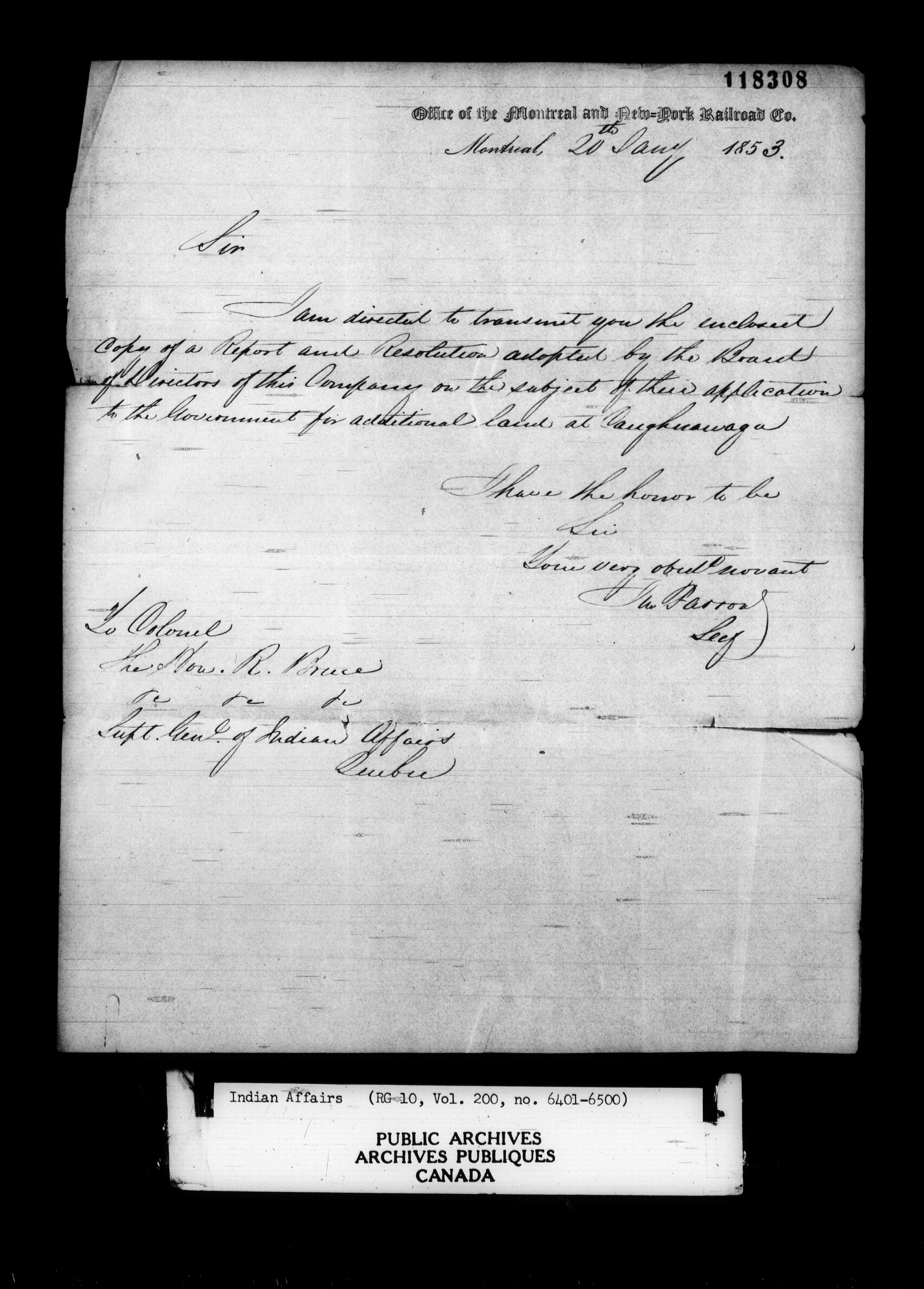 Department of Indian Affairs : Office of the Civil Secretary in the Province of Canada - 11518