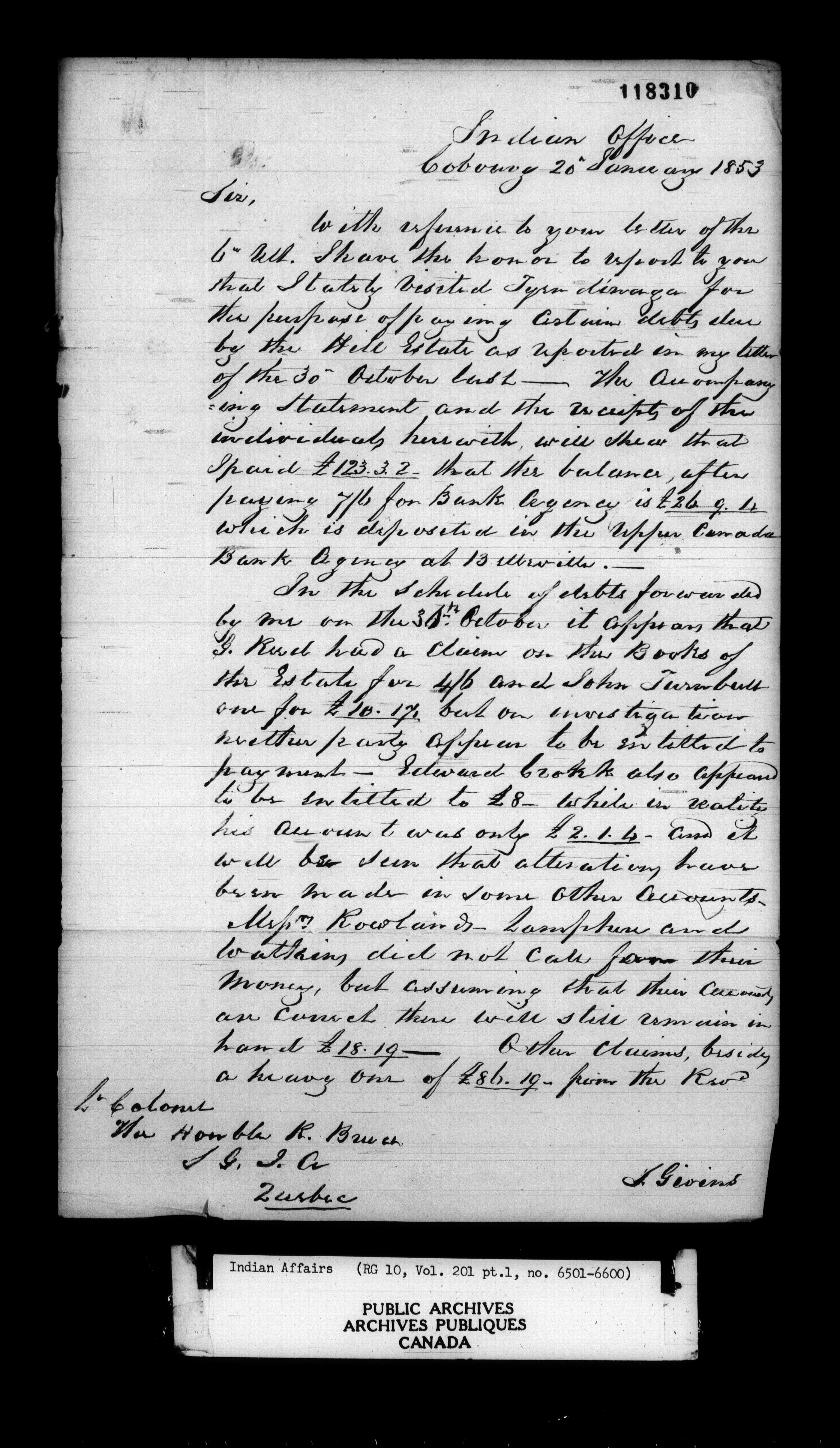 Department of Indian Affairs : Office of the Civil Secretary in the Province of Canada - 11518