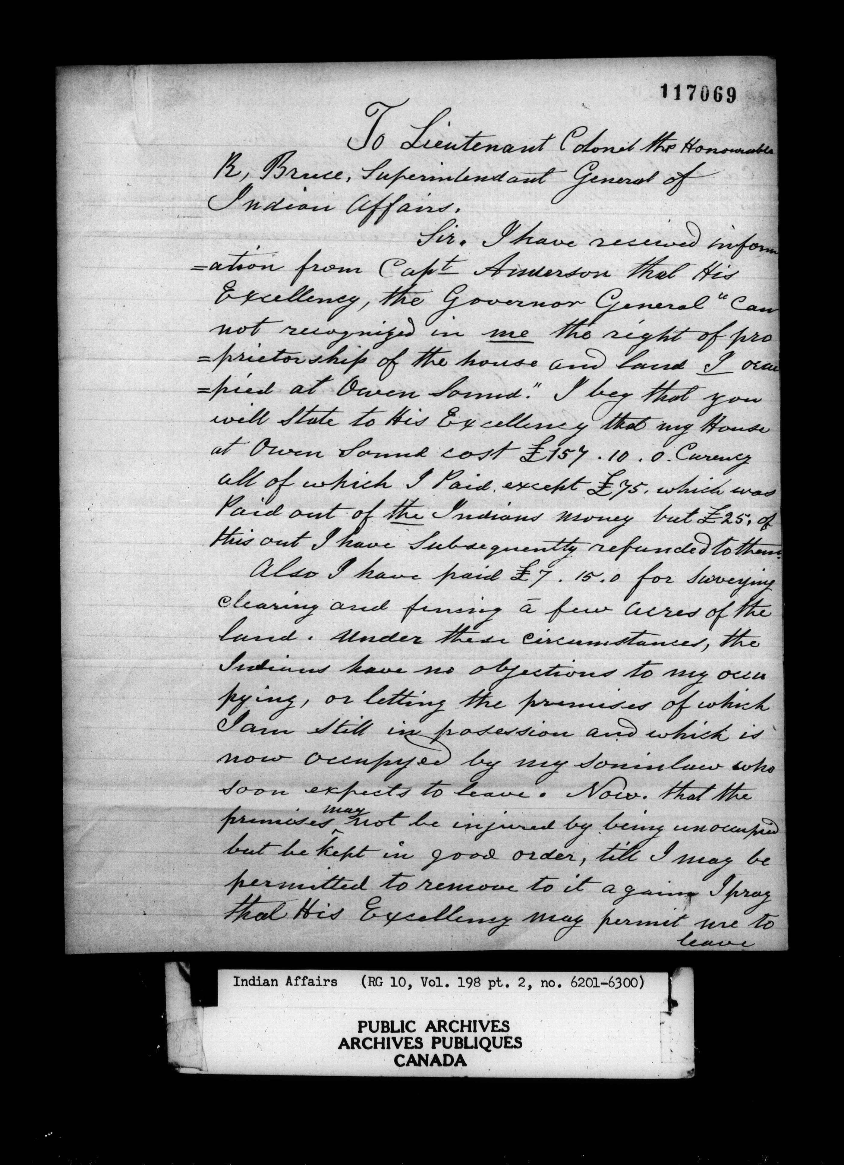 Department of Indian Affairs : Office of the Civil Secretary in the Province of Canada - 11518