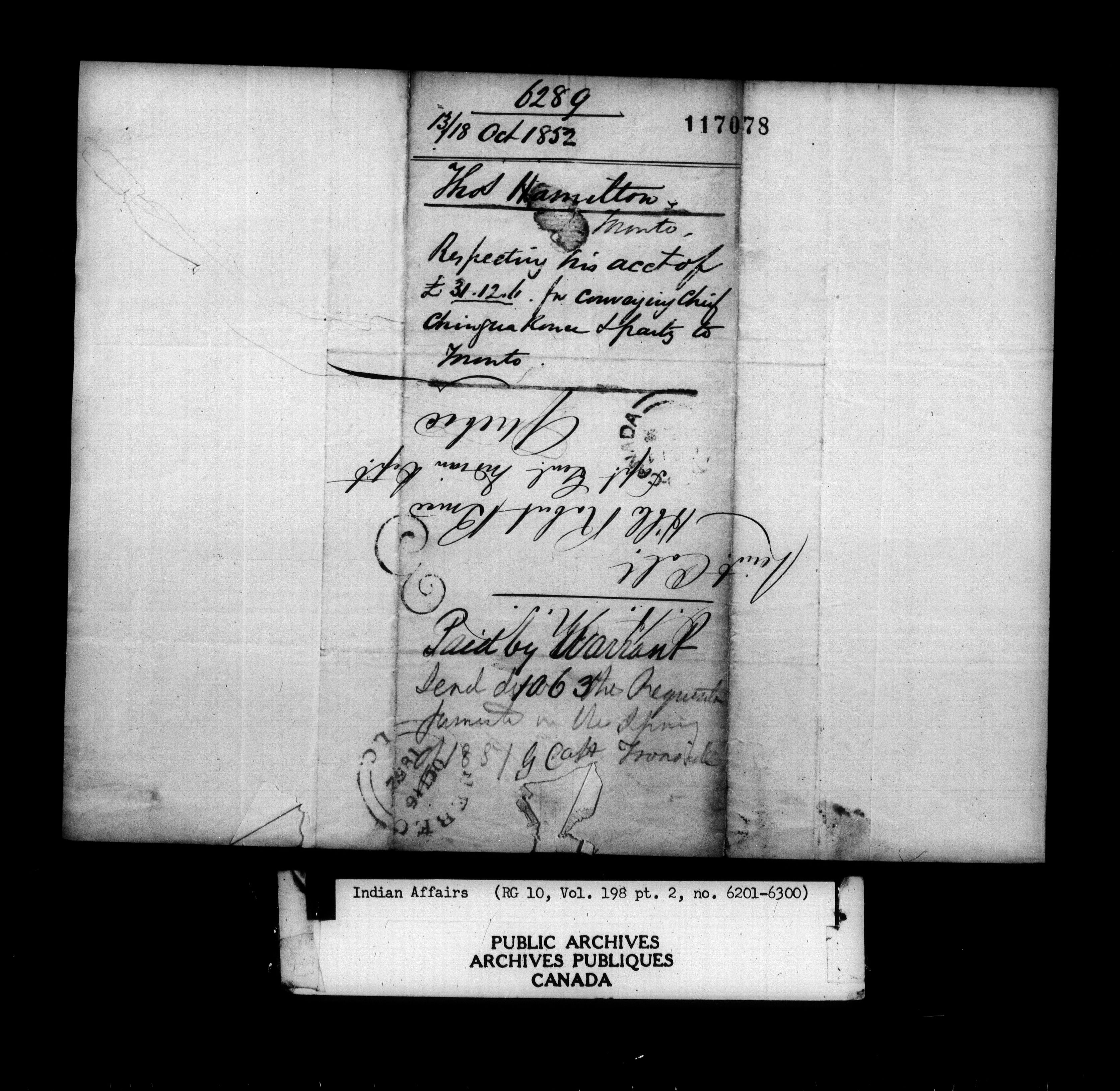 Department of Indian Affairs : Office of the Civil Secretary in the Province of Canada - 11518