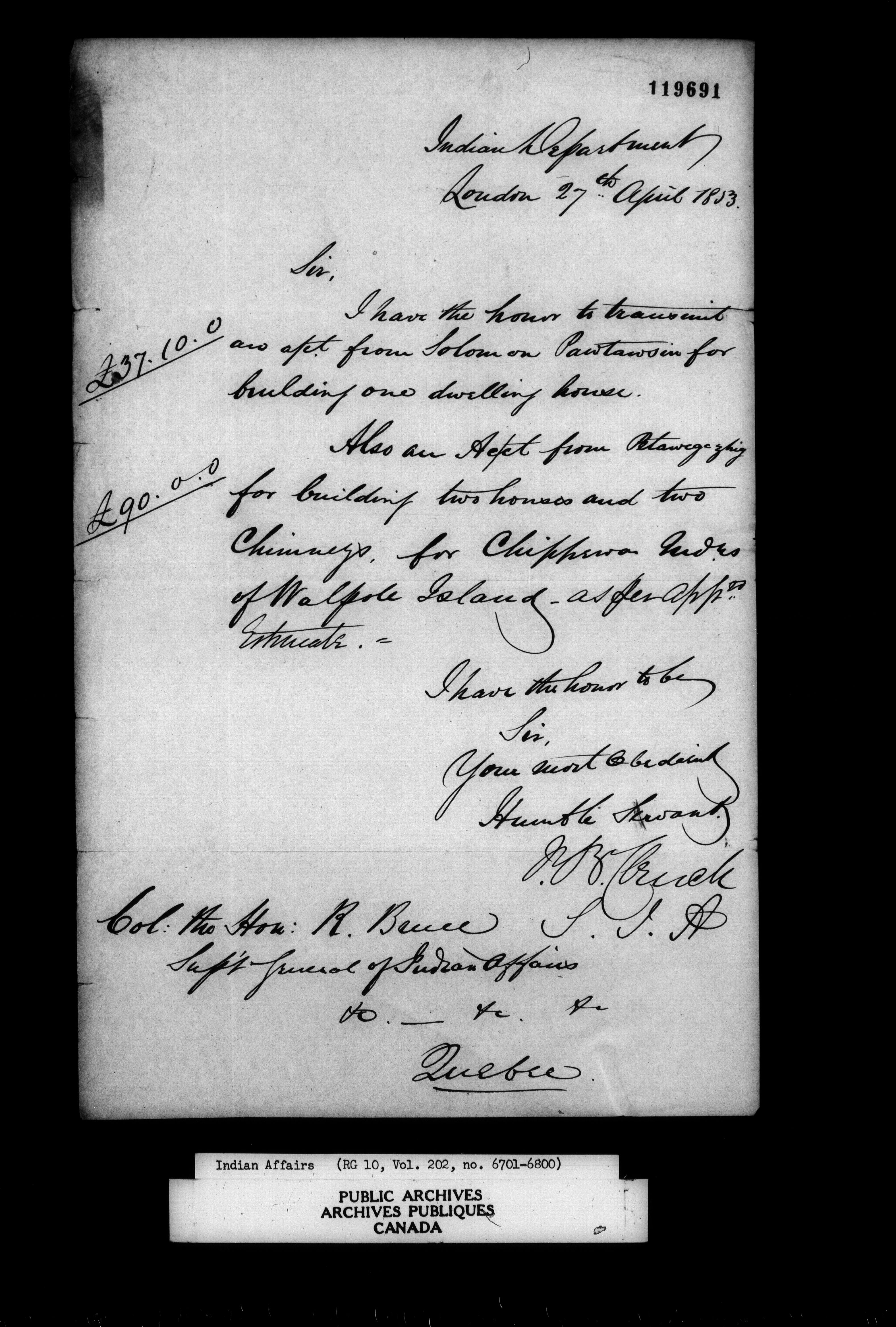 Department of Indian Affairs : Office of the Civil Secretary in the Province of Canada - 11519