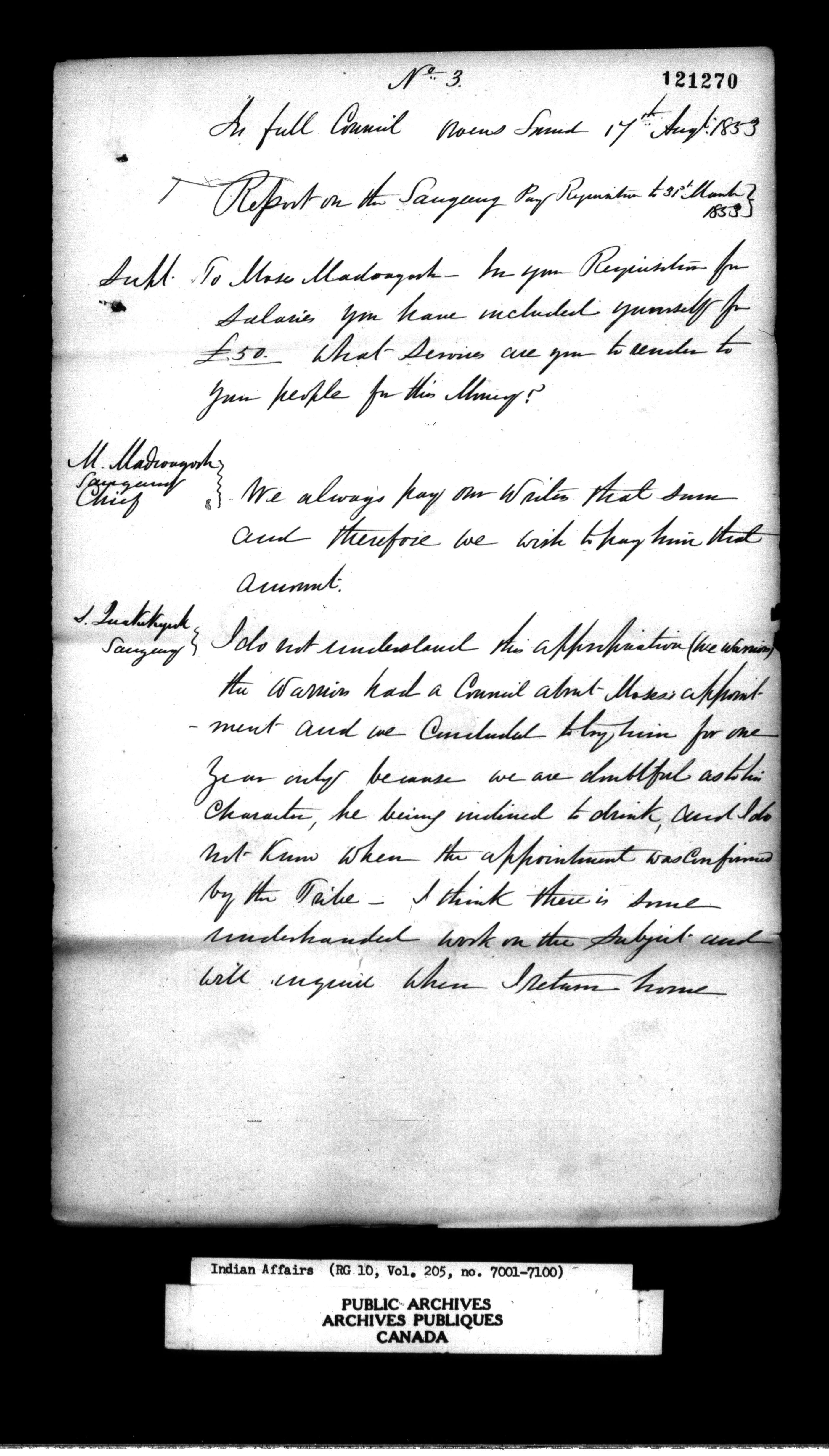 Department of Indian Affairs : Office of the Civil Secretary in the Province of Canada - 11521