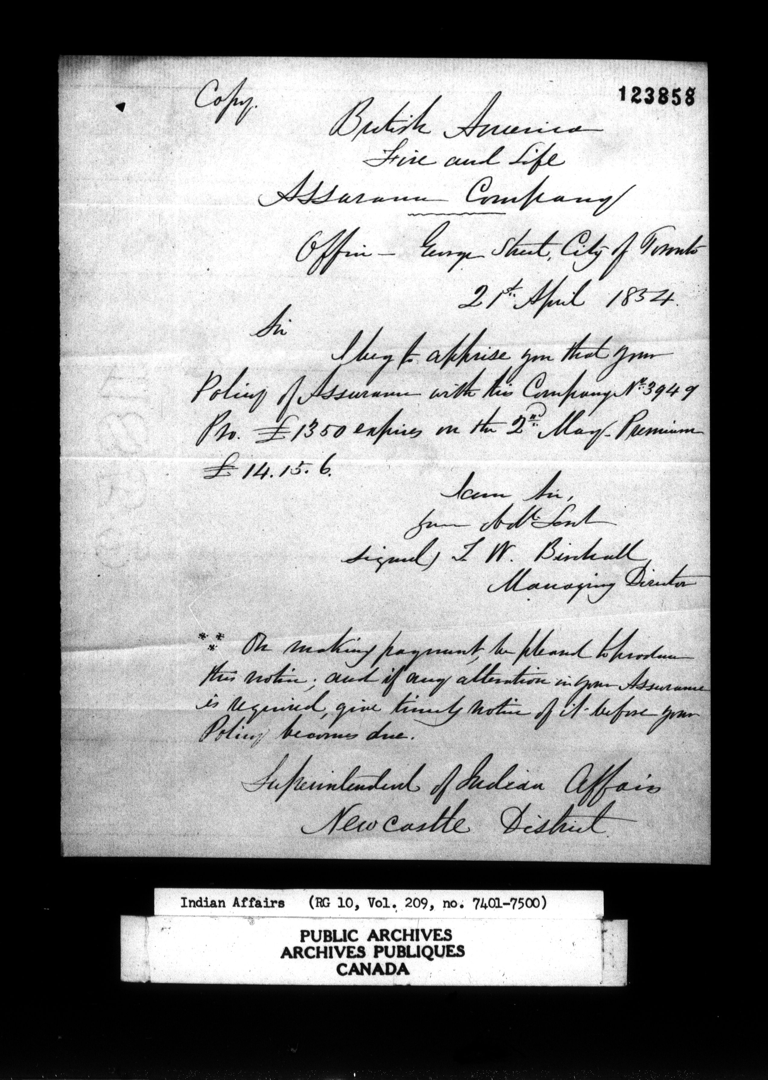 Department of Indian Affairs : Office of the Civil Secretary in the Province of Canada - 11523