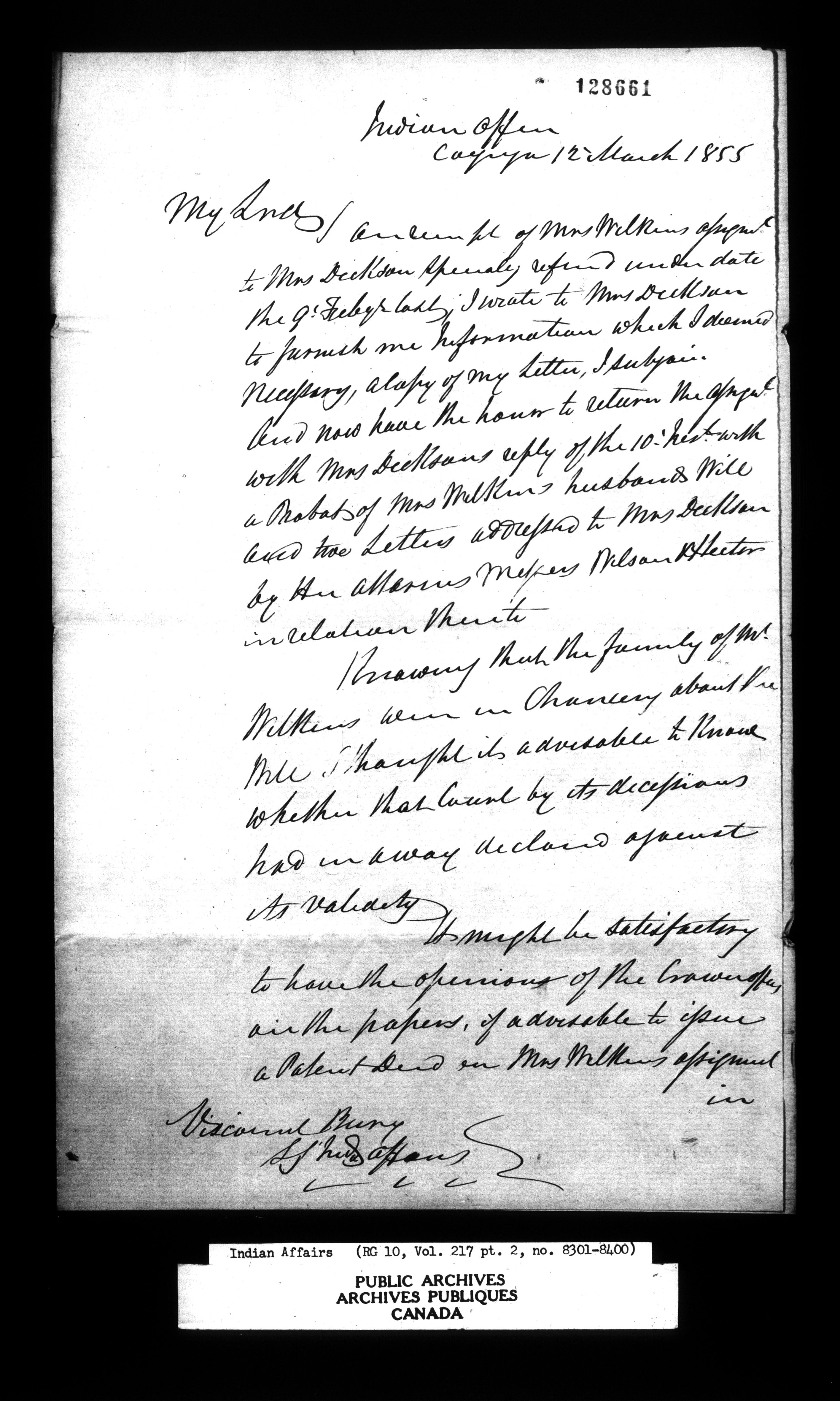 Department of Indian Affairs : Office of the Civil Secretary in the Province of Canada - 11526