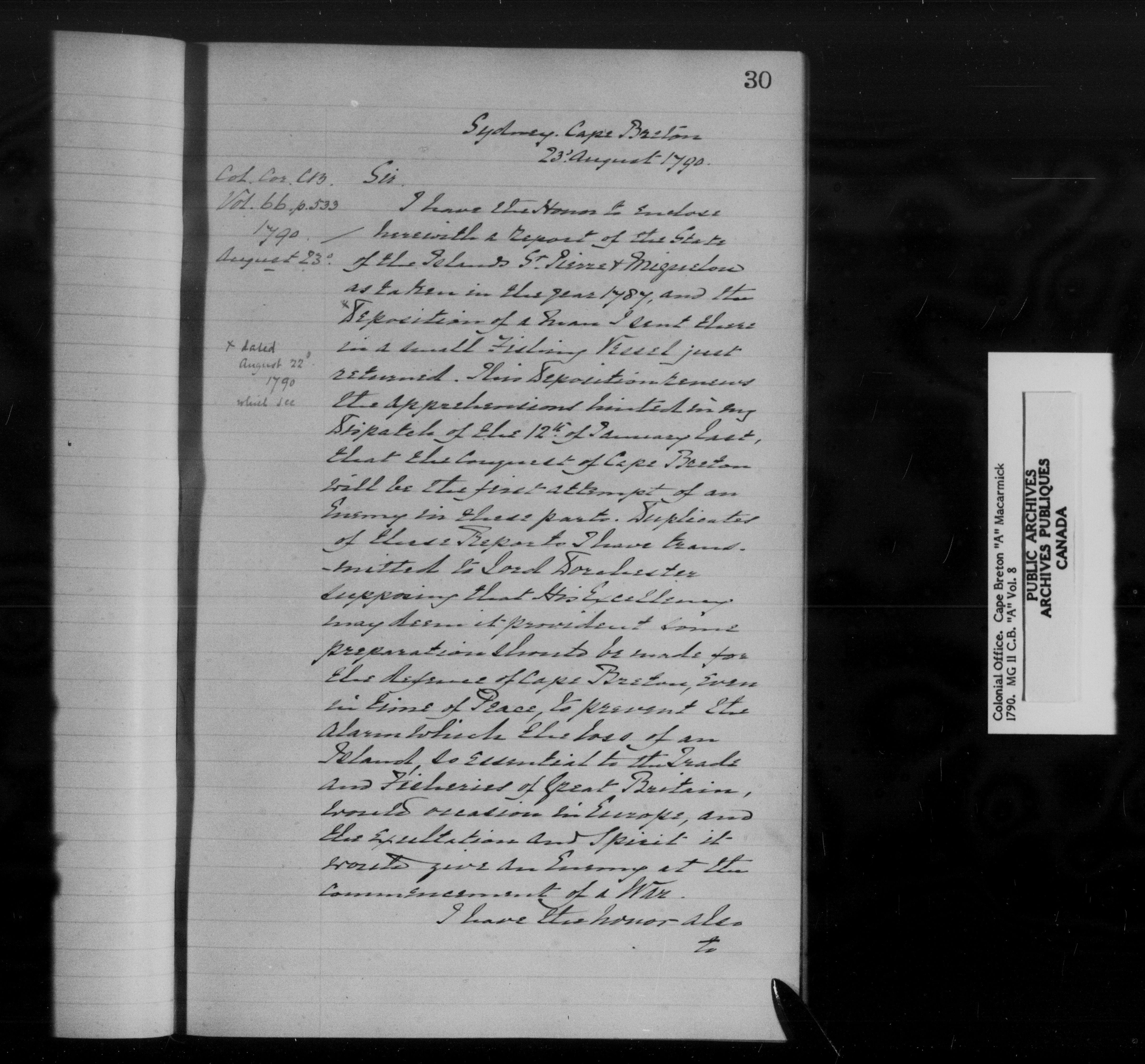 Great Britain: Public Record Office, Original Correspondence, Cape Breton A, C.O. 217 - 11530