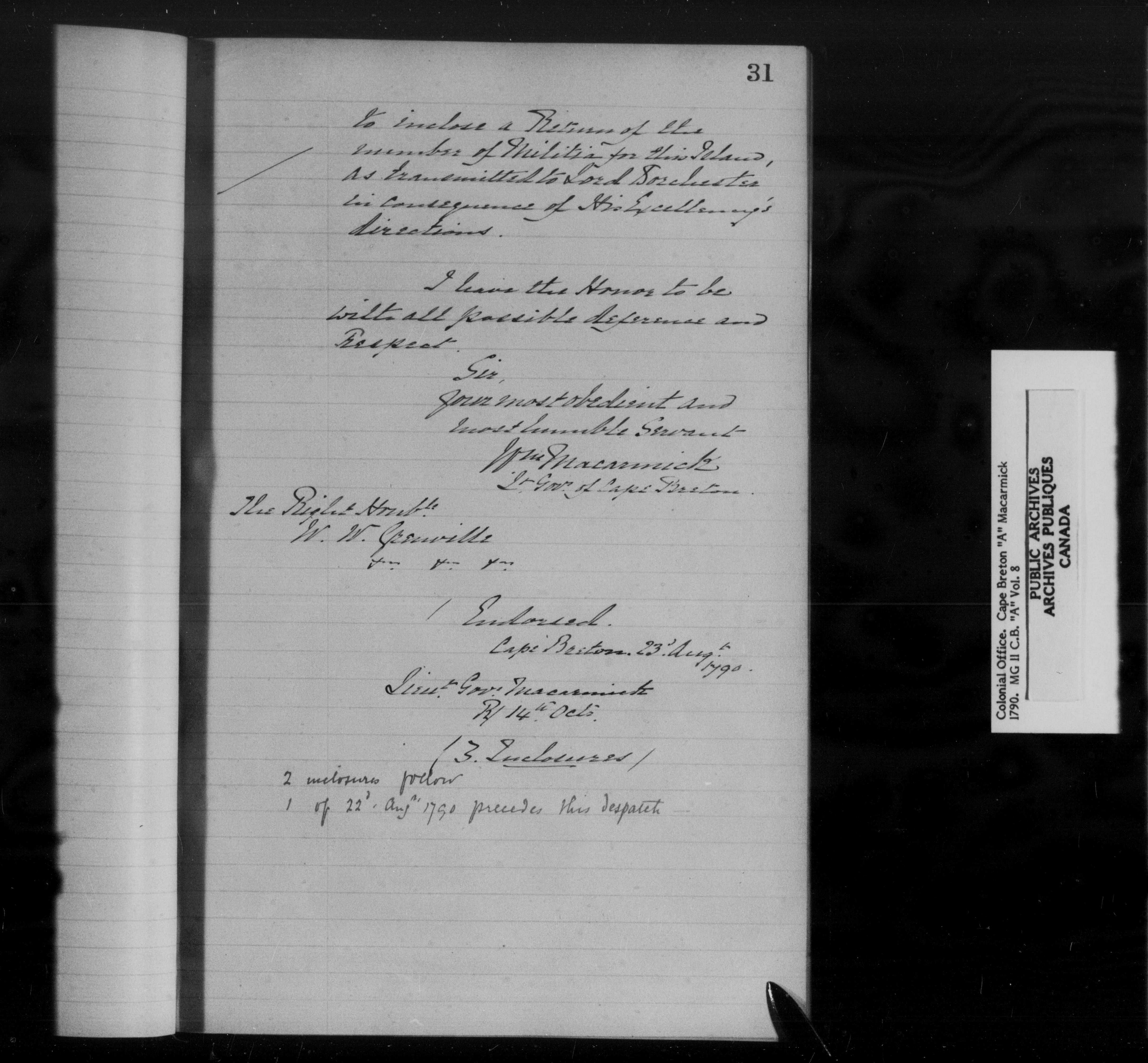 Great Britain: Public Record Office, Original Correspondence, Cape Breton A, C.O. 217 - 11530