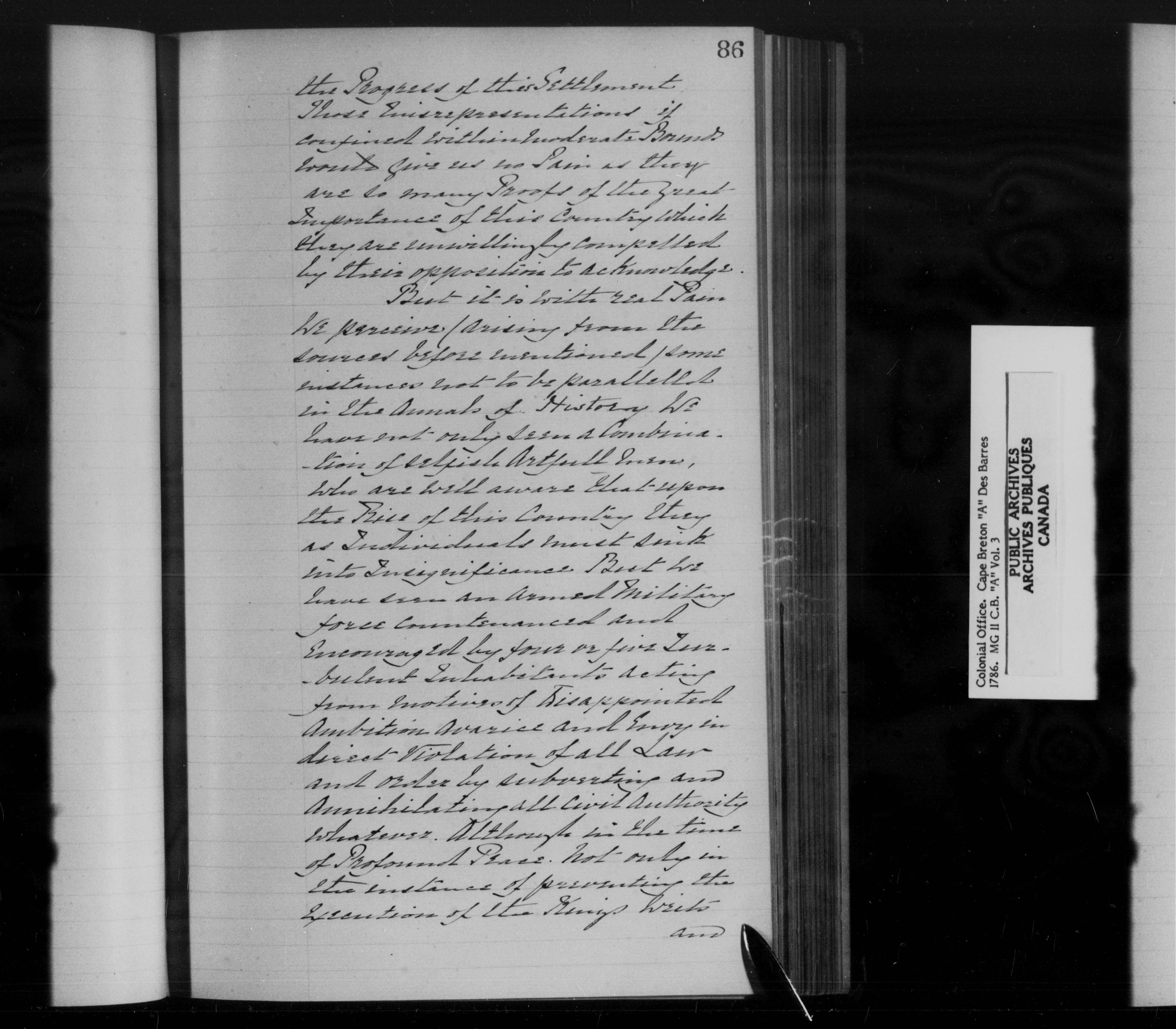 Great Britain: Public Record Office, Original Correspondence, Cape Breton A, C.O. 217 - 11530