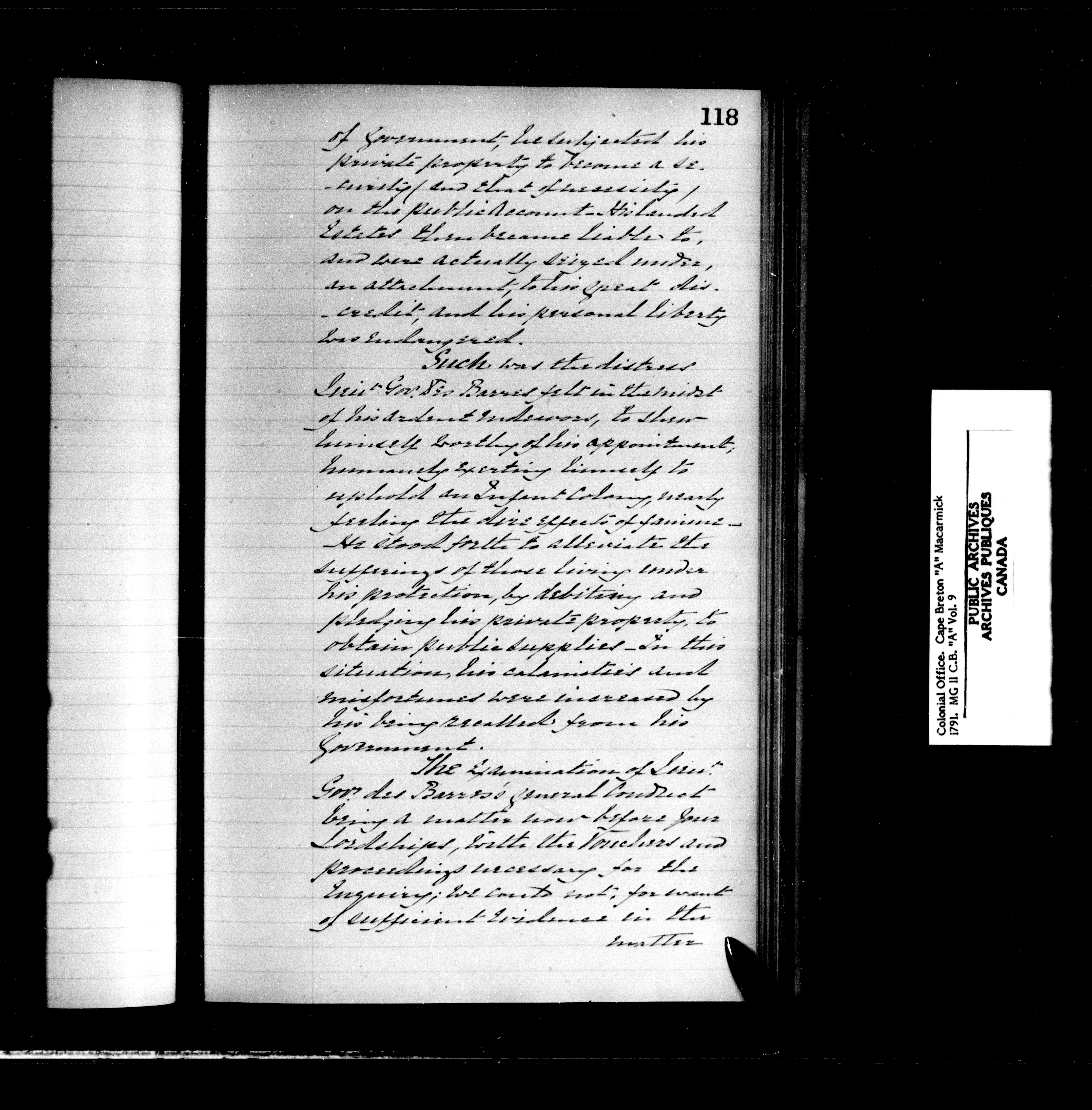 Great Britain: Public Record Office, Original Correspondence, Cape Breton A, C.O. 217 - 11531