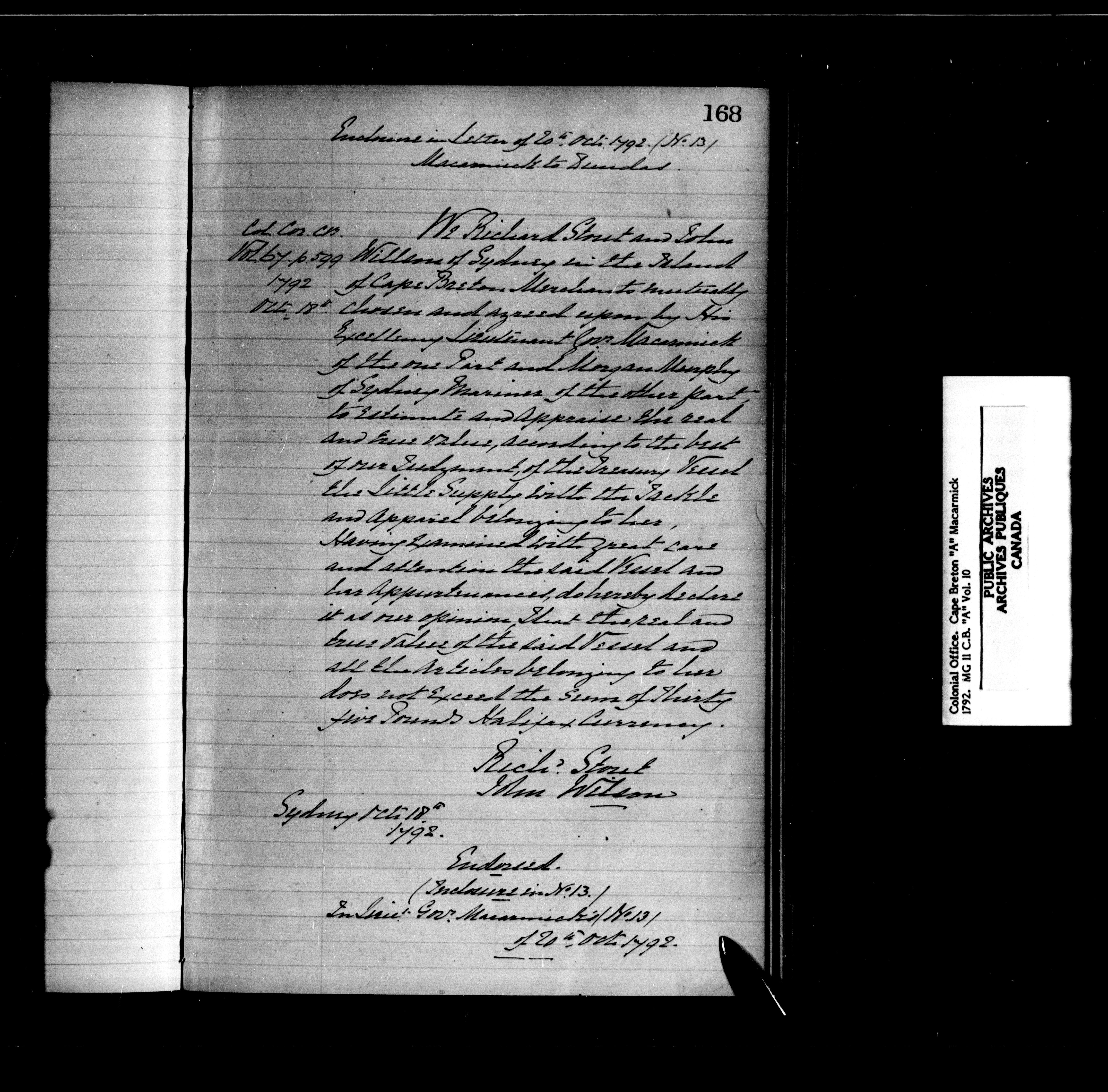 Nova Scotia and Cape Breton, Original Correspondence (CO 217) : C-11531