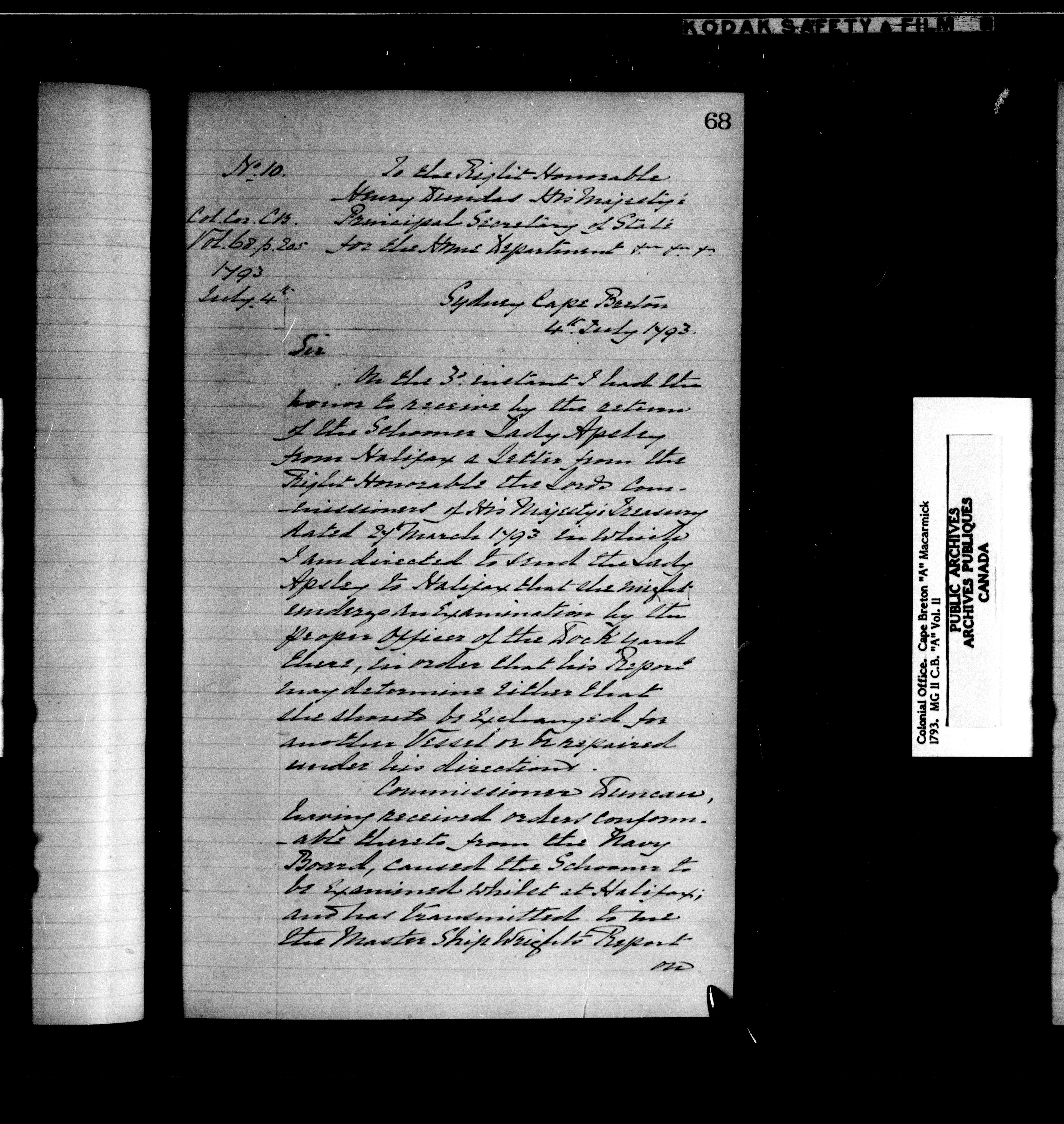 Great Britain: Public Record Office, Original Correspondence, Cape Breton A, C.O. 217 - 11531
