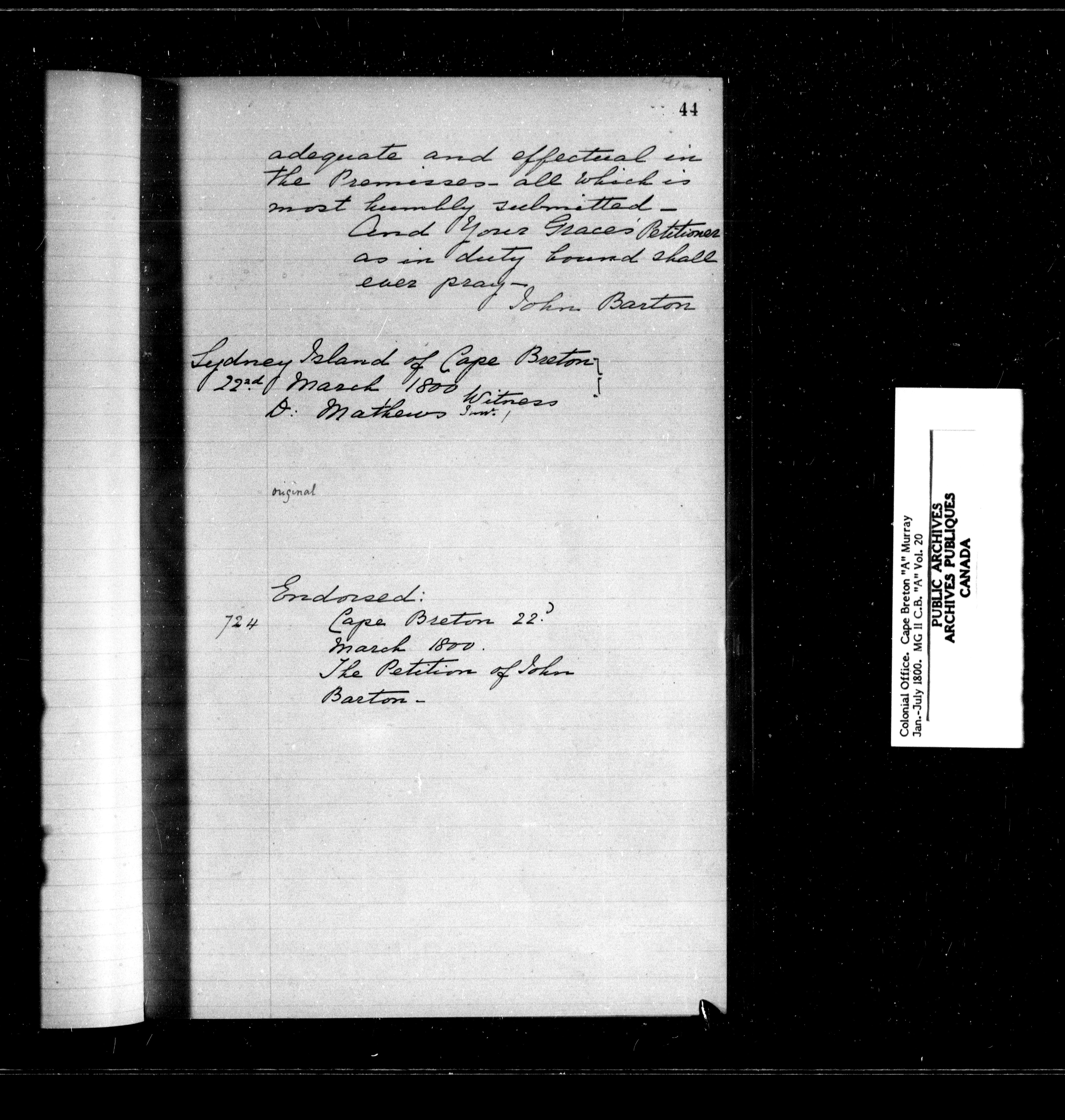 Nova Scotia and Cape Breton, Original Correspondence (CO 217) : C-11533
