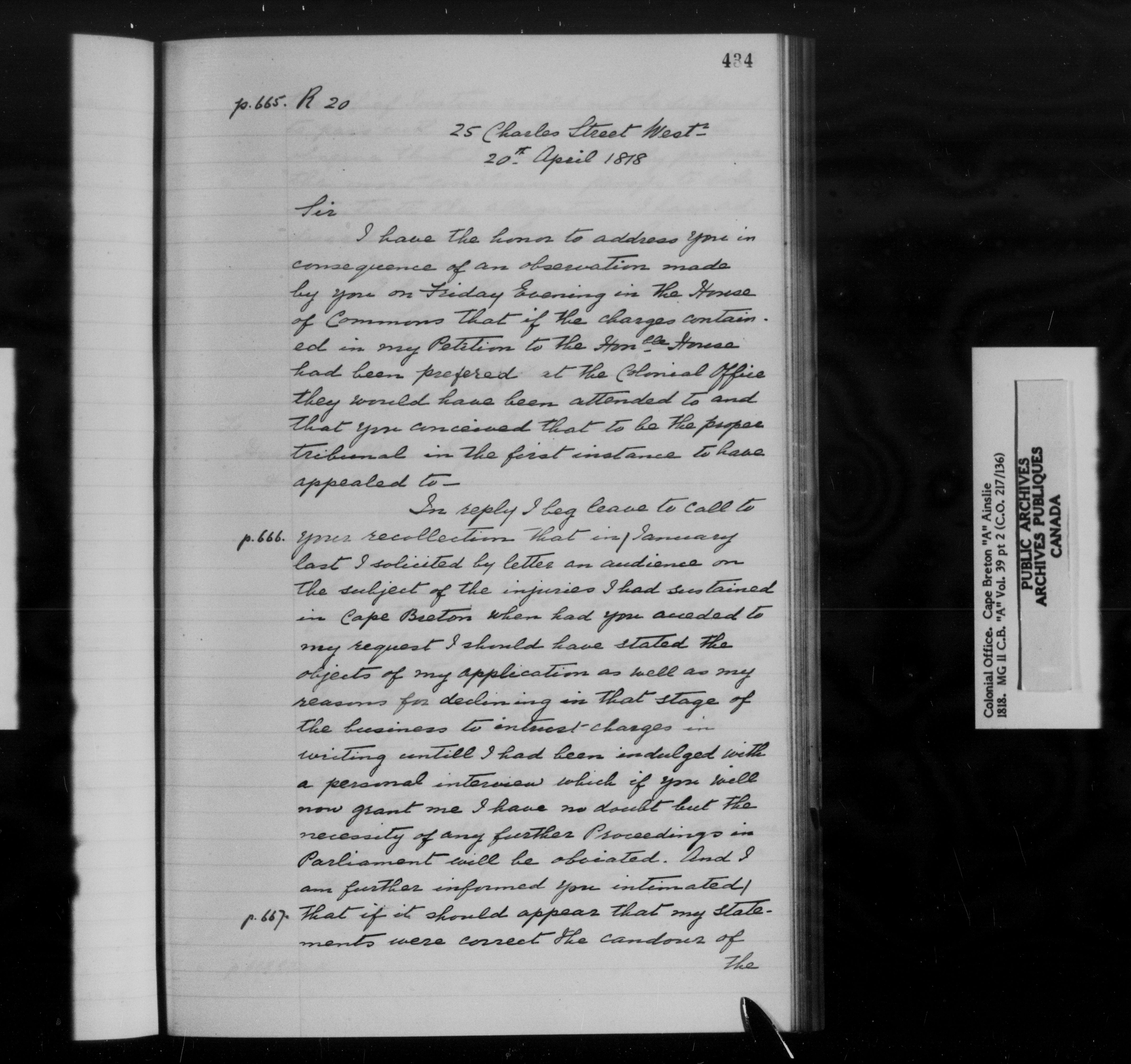 Great Britain: Public Record Office, Original Correspondence, Cape Breton A, C.O. 217 - 11535