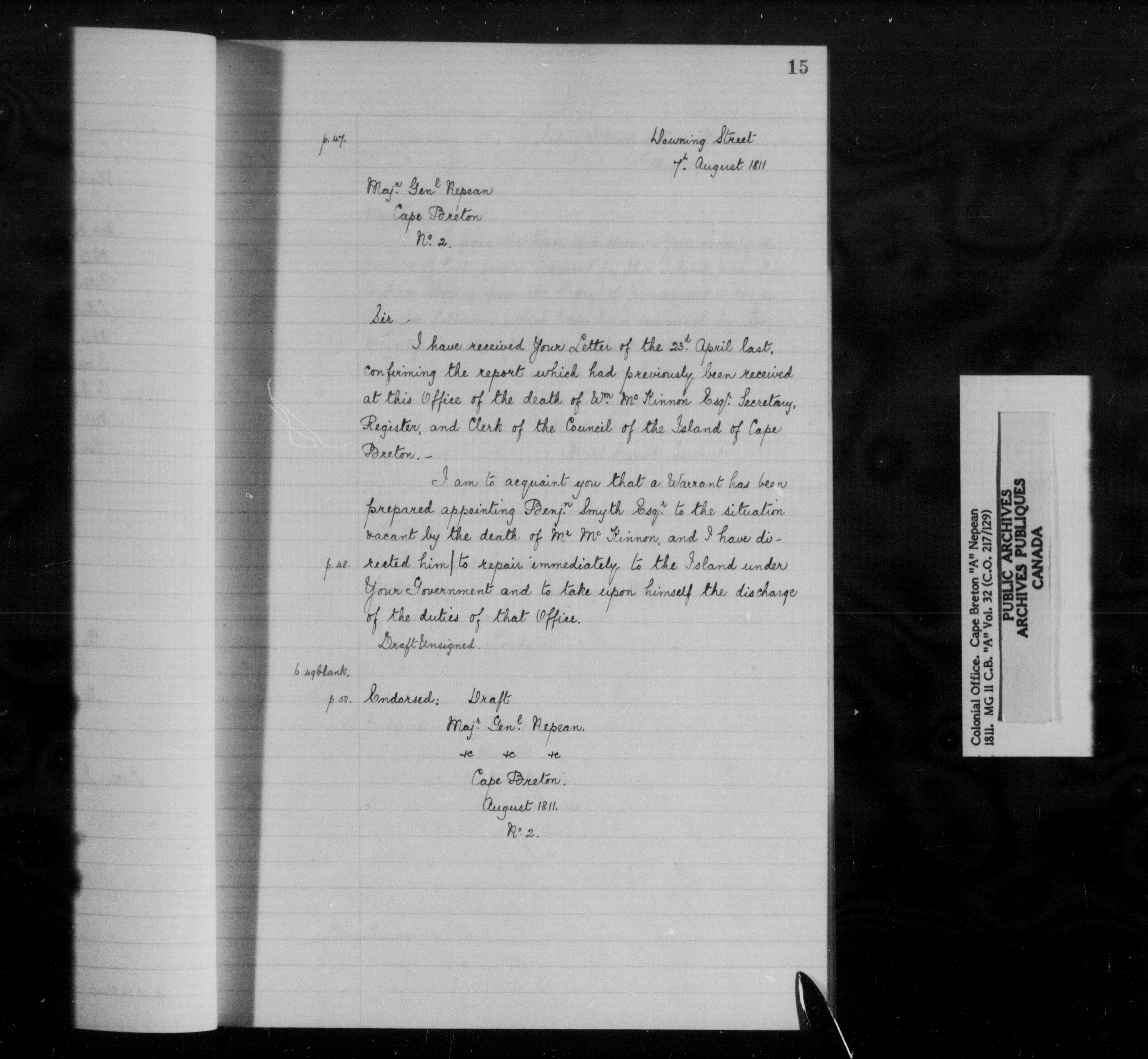 Nova Scotia and Cape Breton, Original Correspondence (CO 217) : C-11535